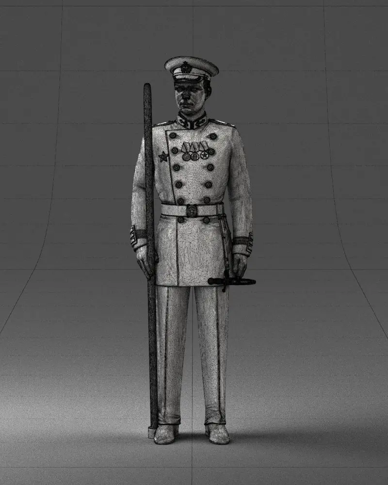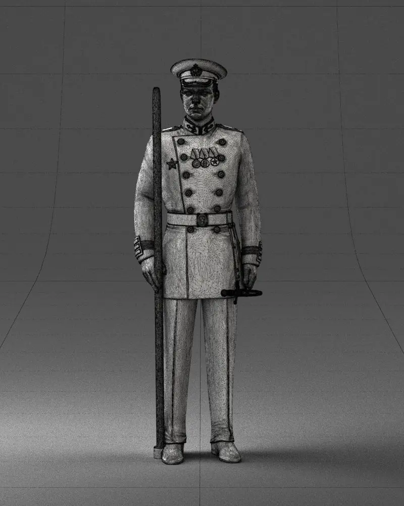 Detailed model of a Soviet naval officer in full dress uniform with saber, created via 3D scanning technology. Ideal for collectors and historical miniature enthusiasts. This statue is ready for 3D printing with optimized STL geometry suitable for both resin and FDM printers.
