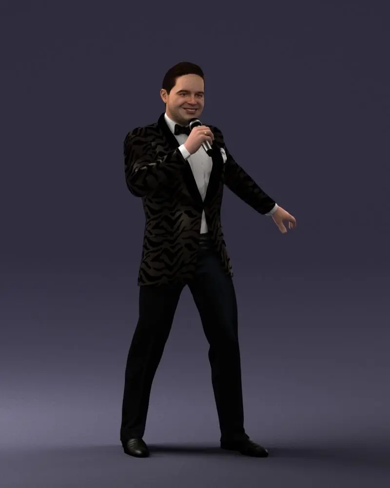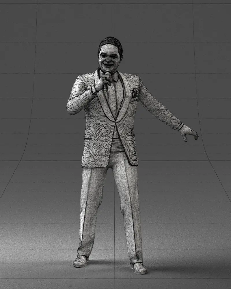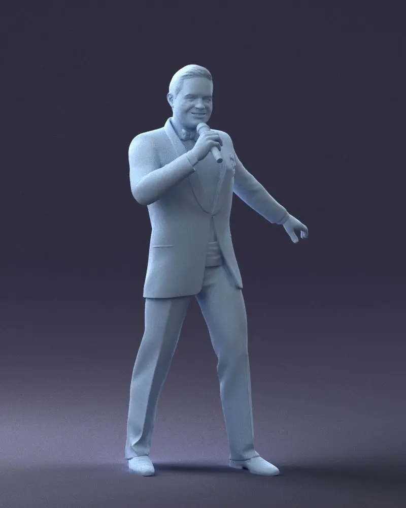 3D Printable Model: Entertainer with Microphone – Lifelike Figurine for Event Displays and GiftsDescription:Detailed 3D printable figurine of a charismatic male performer holding a microphone, scanned with high precision to capture the nuances of pose and clothing. Perfect for collectors, custom cake toppers, personalized gifts or stage-themed dioramas. This model was created using 3D scanning technology for superior realism and print fidelity.