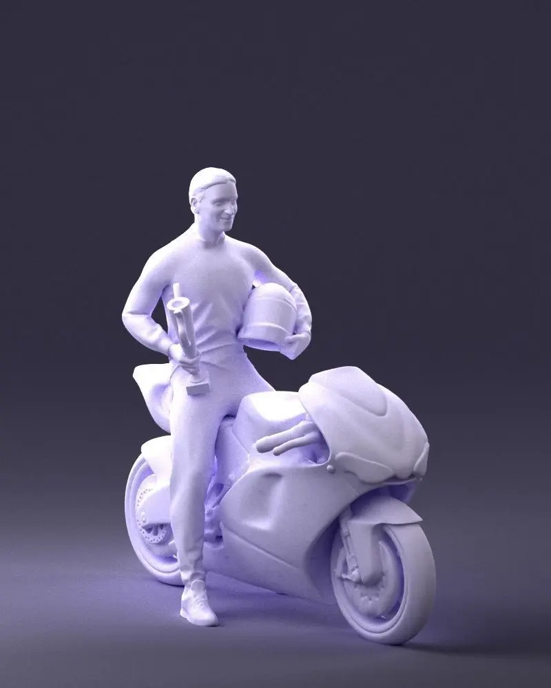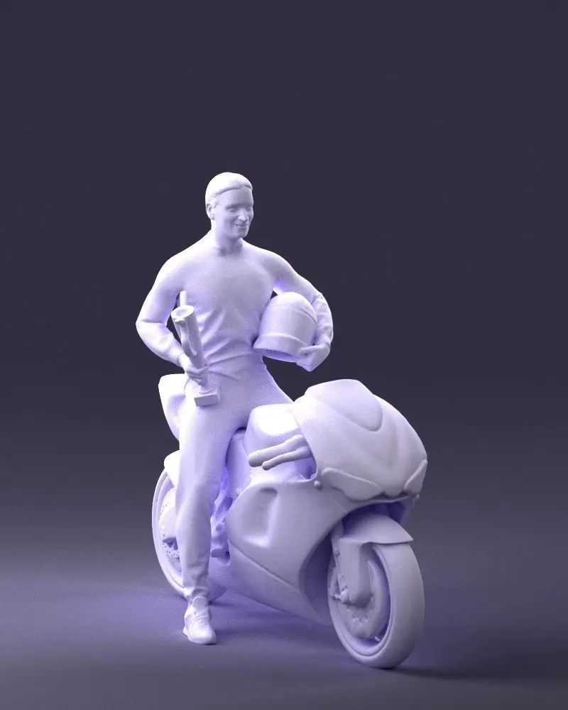 This 3D printable figurine captures a victorious race driver in a triumphant pose, flexing with pride and gripping a detailed trophy. Designed as a single-mesh printable model, it is ideal for use in themed dioramas, motorsport awards, or decorative displays. The pose reflects a moment of glory and is suited for both hobby and professional model applications.