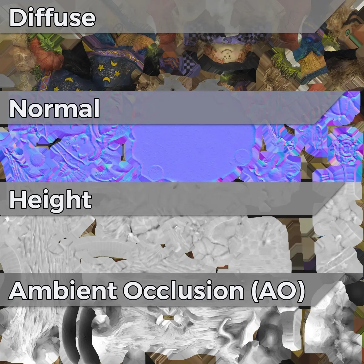 - 4k/2K/1K Ambient Occlusion texture for each level (respectively)