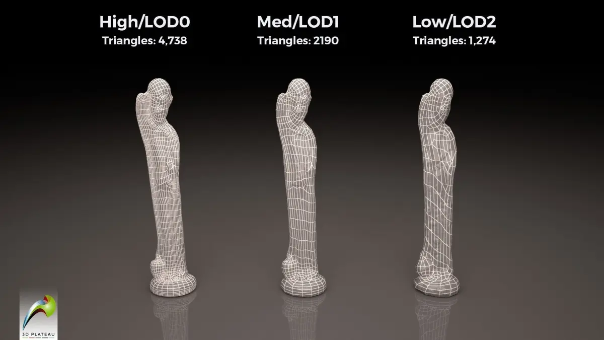- One model divided into 3 LOD levels; level 0, 1, and 2.