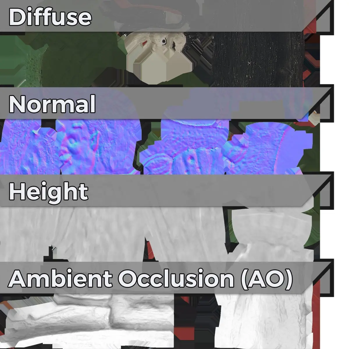 - -- Diffuse, Normal, Height, AO