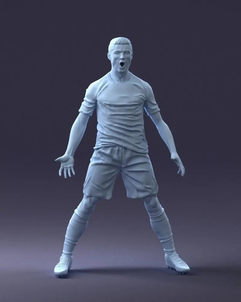 3D printable model of a soccer player celebrating a goal. Designed with realistic body proportions and dynamic motion, this 3D scanned model is perfect for collectible sports figurines, fan memorabilia, and display pieces.
