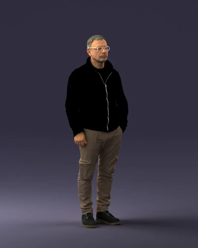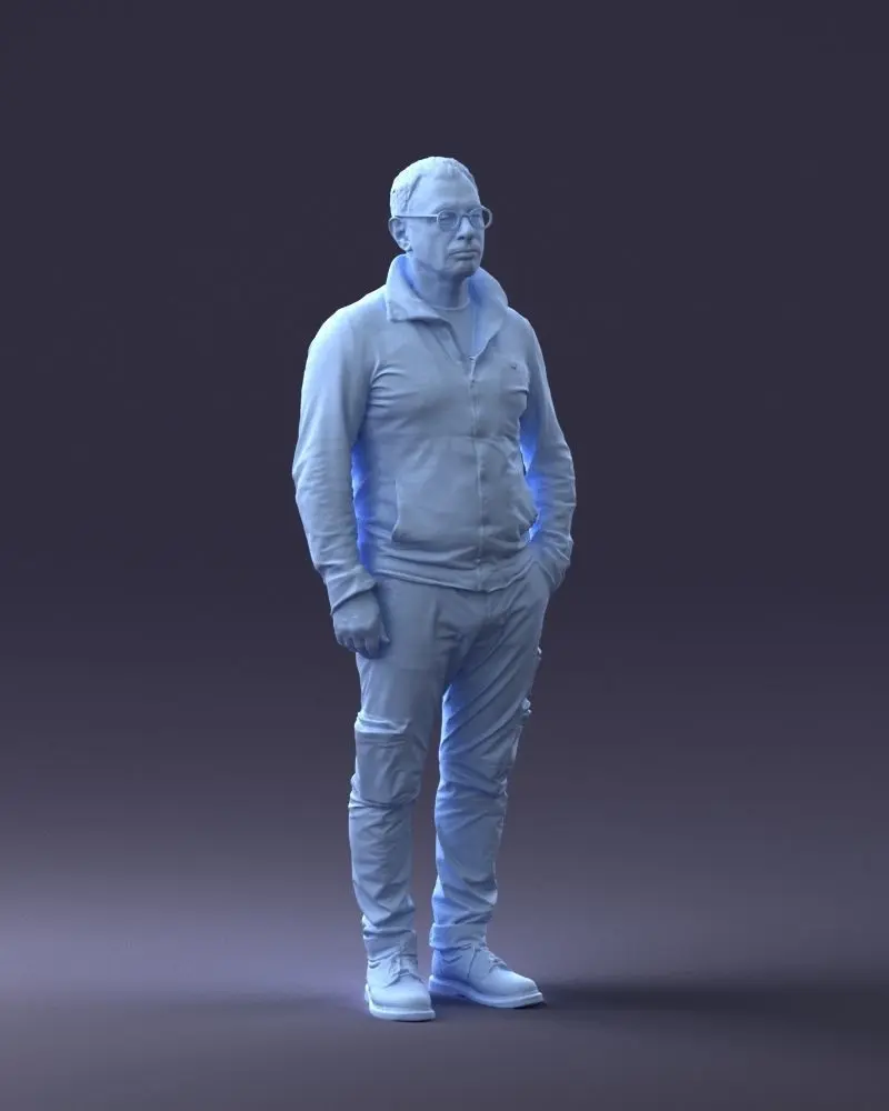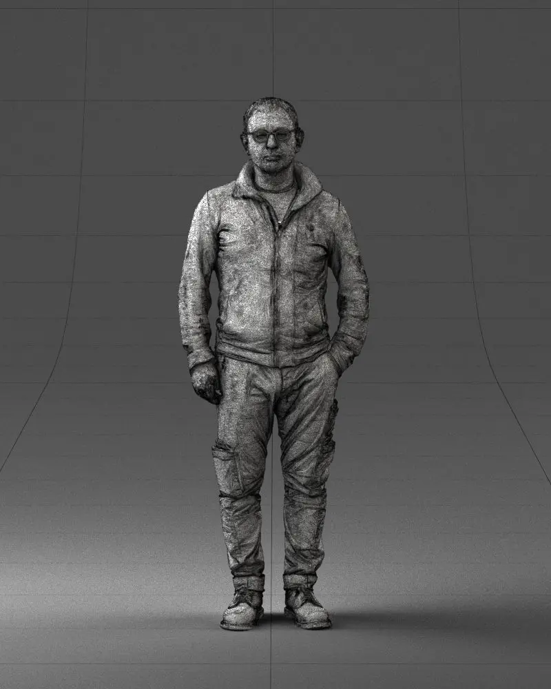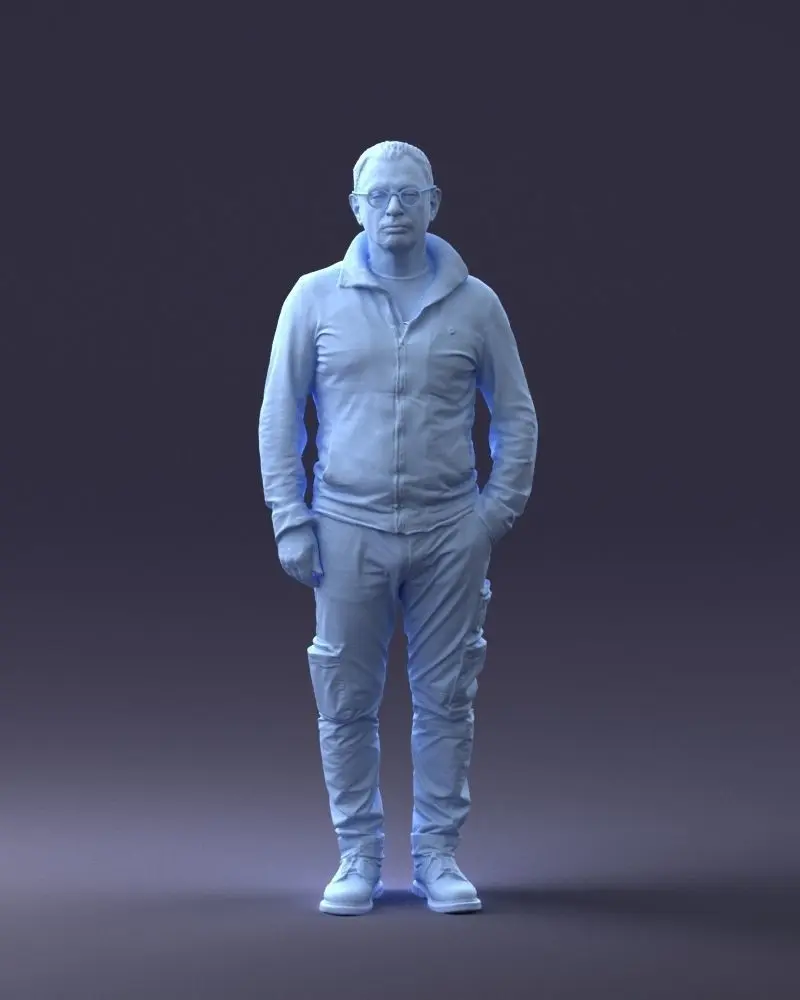 3D printable figurine of a man in casual urban clothing with realistic details. Scanned for authenticity, this figurine is suitable for collectors, diorama building, modern urban settings, and educational displays.