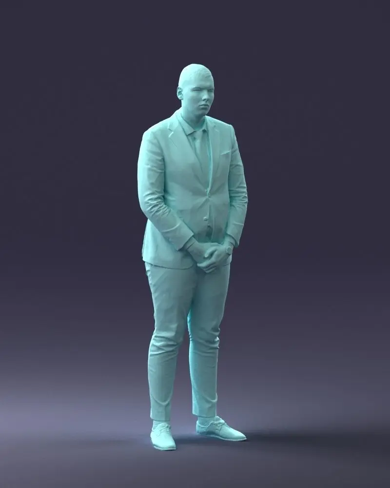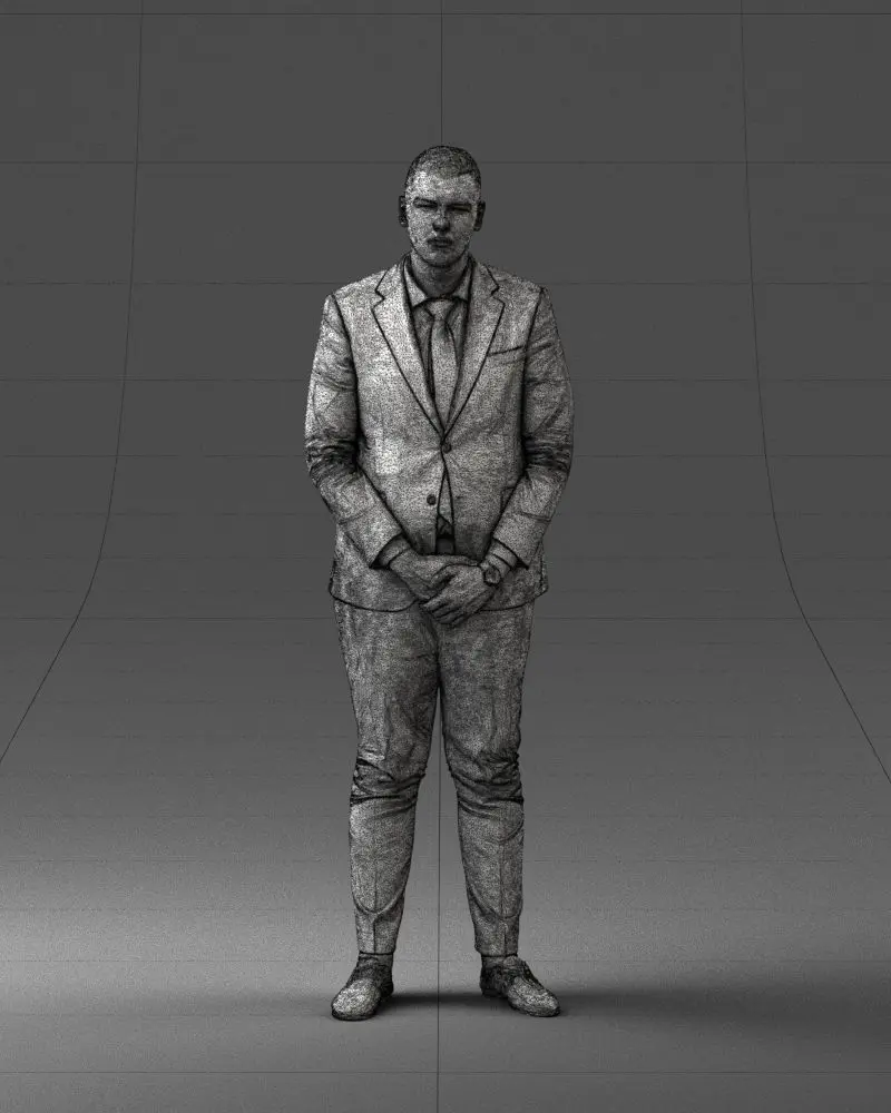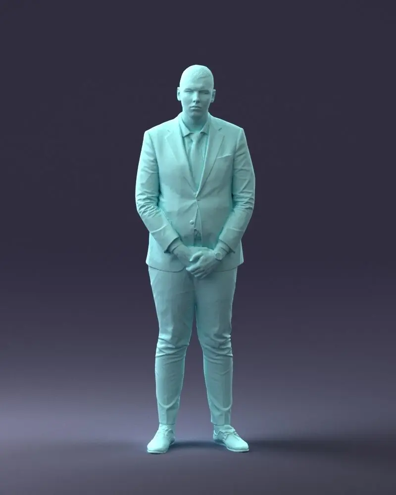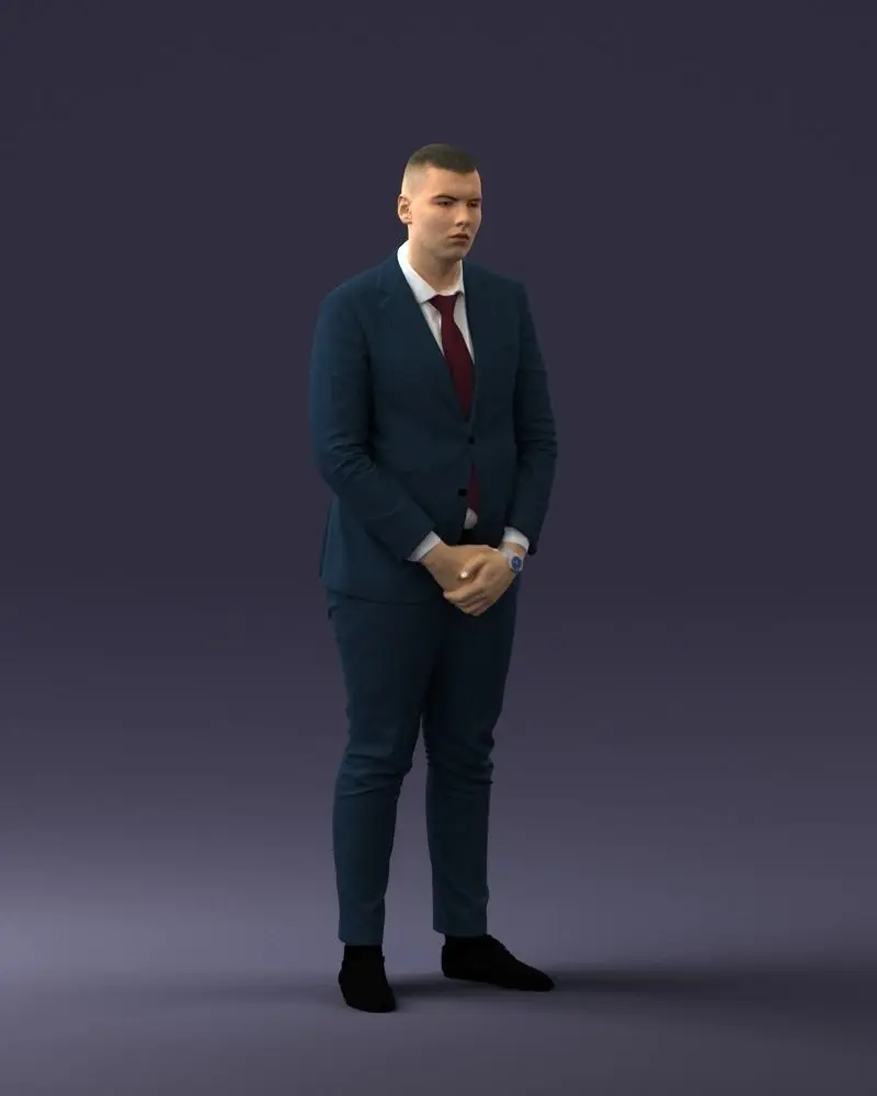 A 3D printable figurine of a businessman wearing a dark blue suit and red tie, standing in a formal pose. This model works perfectly as a decorative desk figure, collectible item, or character for miniature sets. Designed with clean geometry suitable for resin or FDM printing.