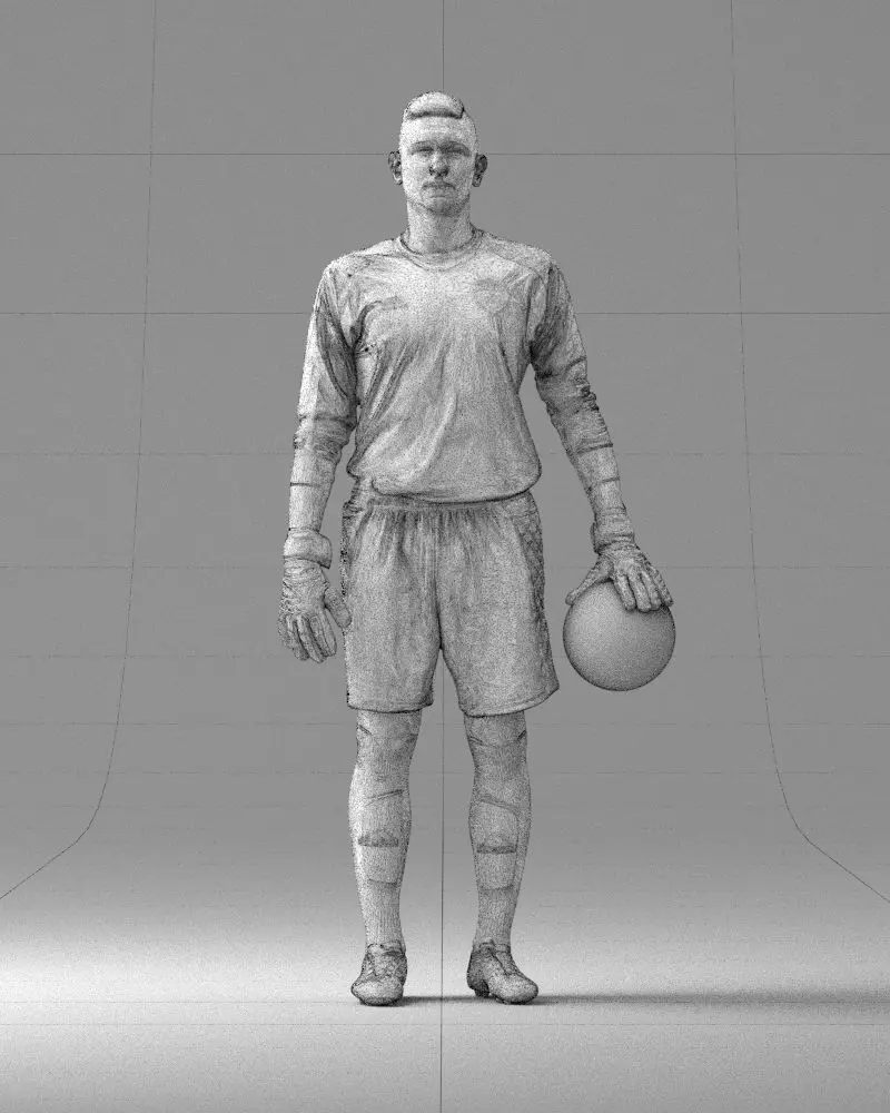 The realistic stance and balanced posture make it easy to integrate into sports scenes, cinematic environments, or crowd compositions.Every element, from the gloves to the ball, was scanned to maintain authentic surface textures and human anatomy.