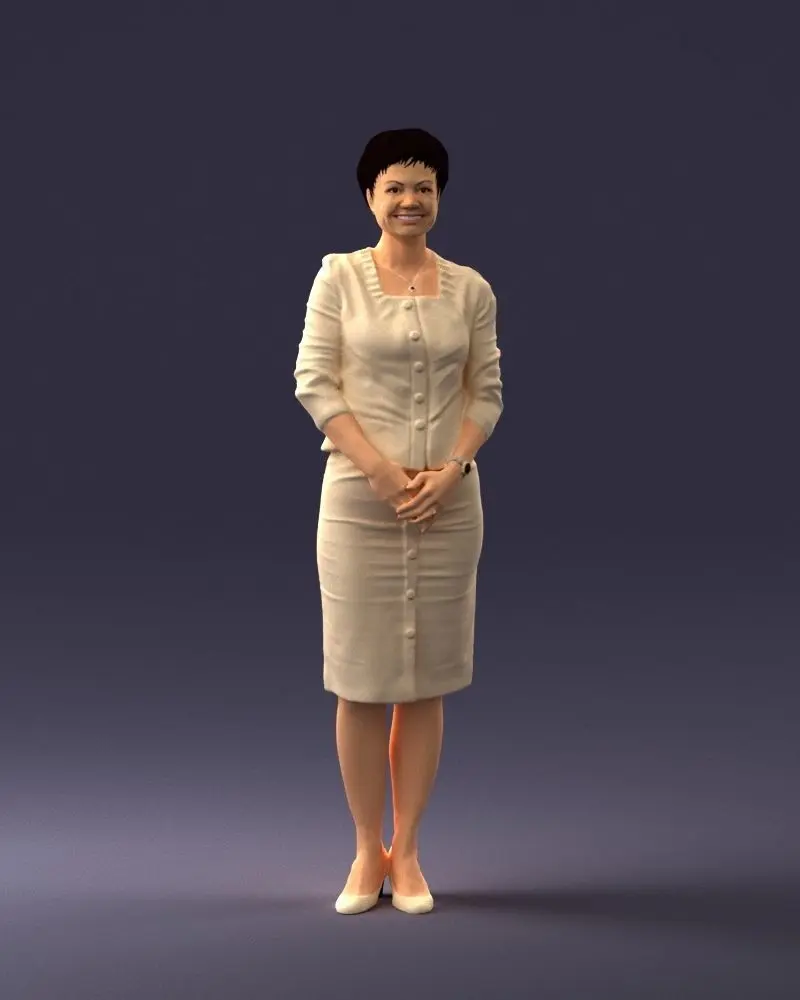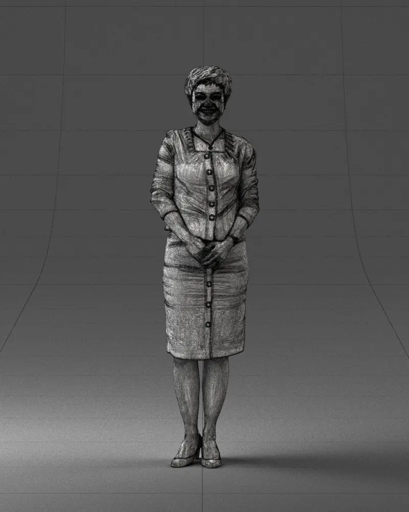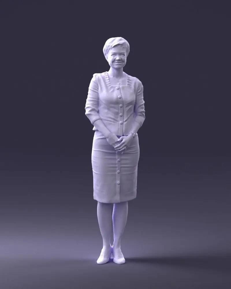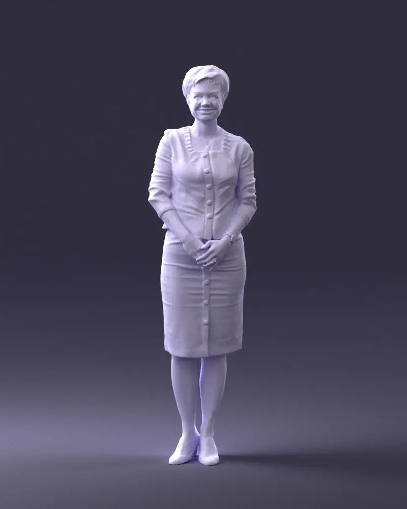Detailed 3D printable model of a woman in a formal dress, captured via 3D scanning to ensure realistic anatomy and surface precision.Optimized for resin and filament 3D printing, suitable for use in miniature collections, dioramas, or educational and art displays.Watertight and ready for physical production.