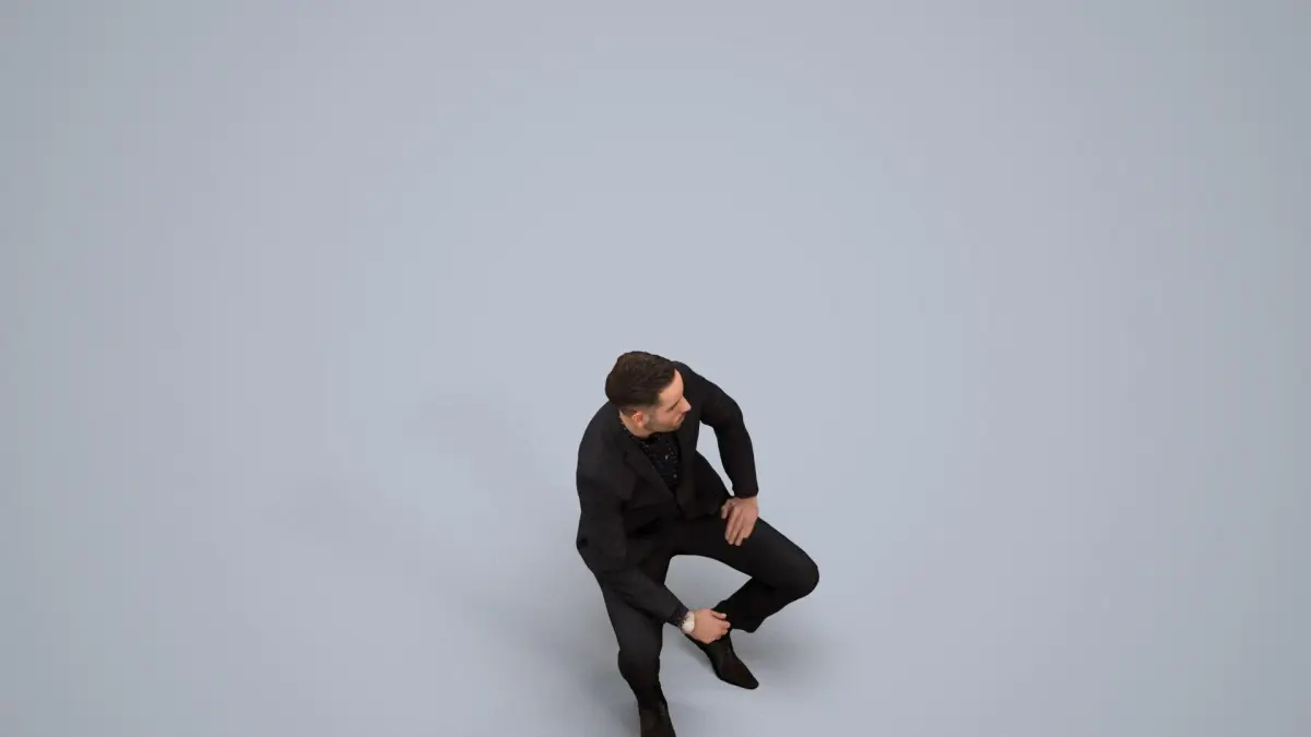 a man in a suit sitting on a cube