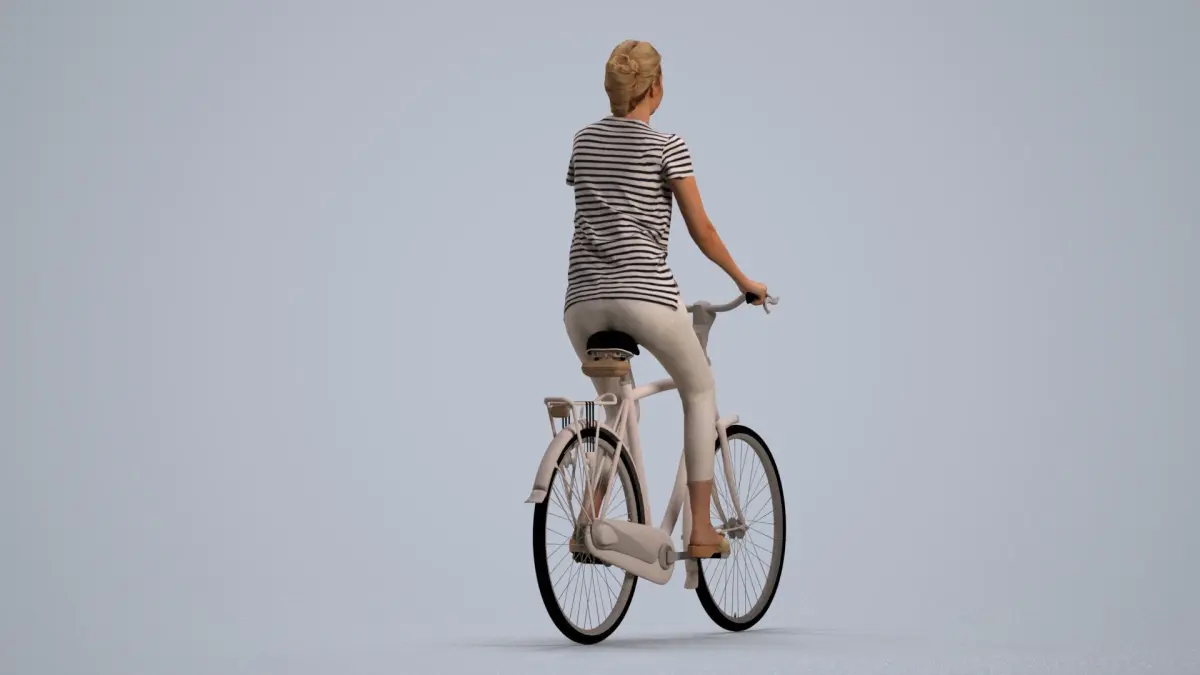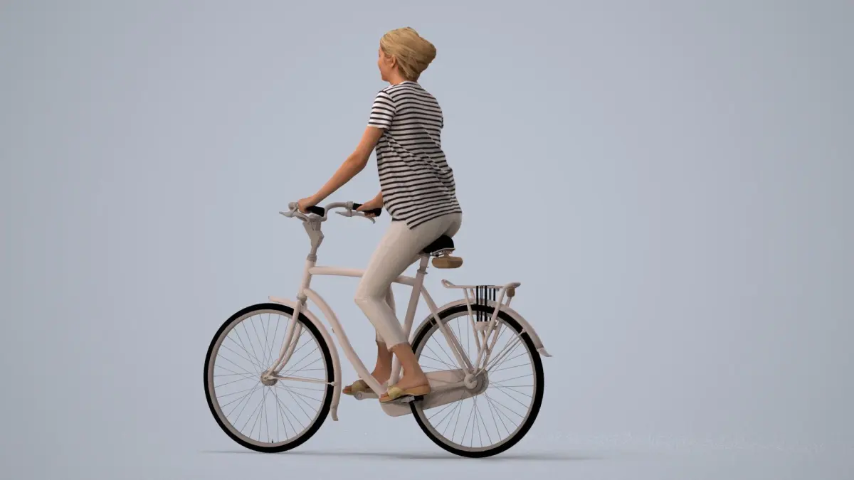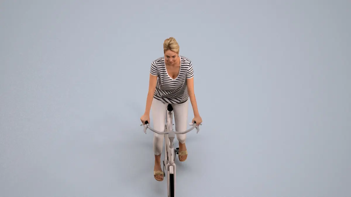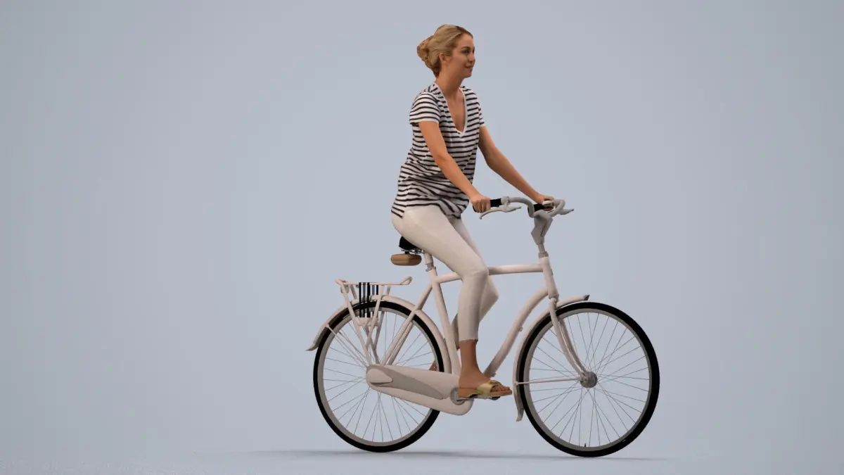 a woman riding a bike on a gray background