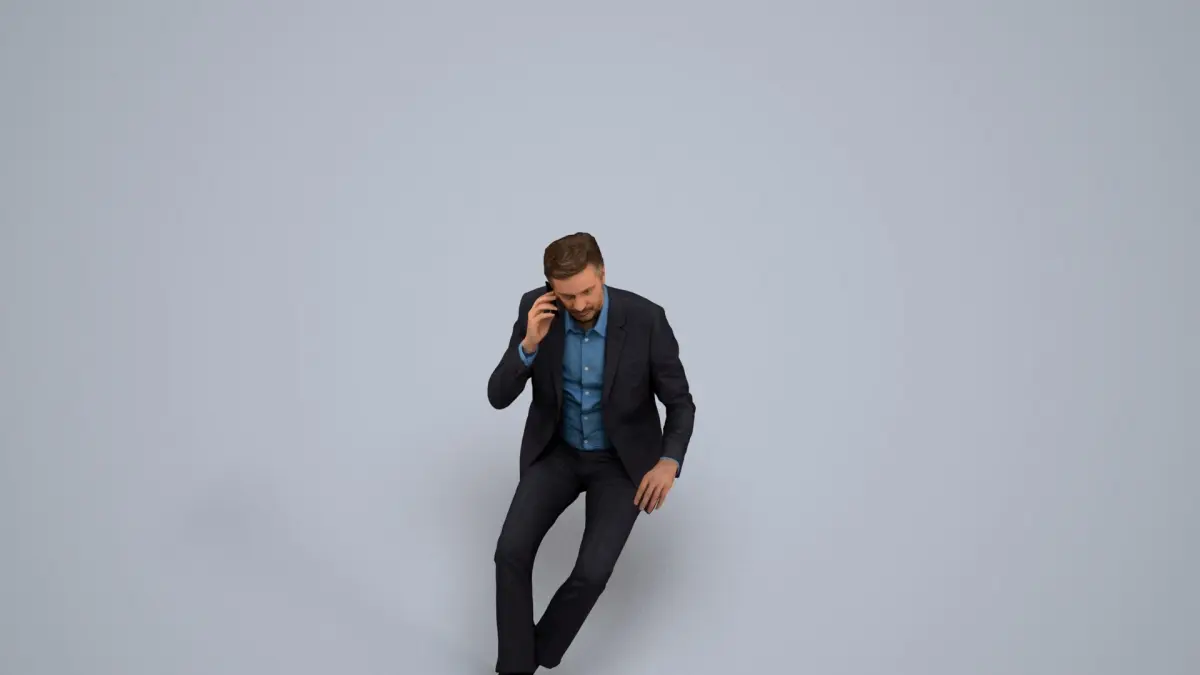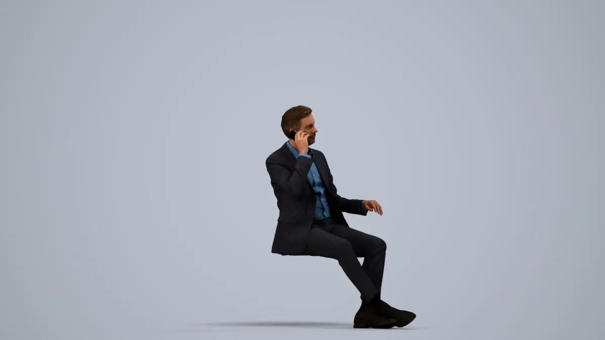 a man sitting on a cube talking on a cell