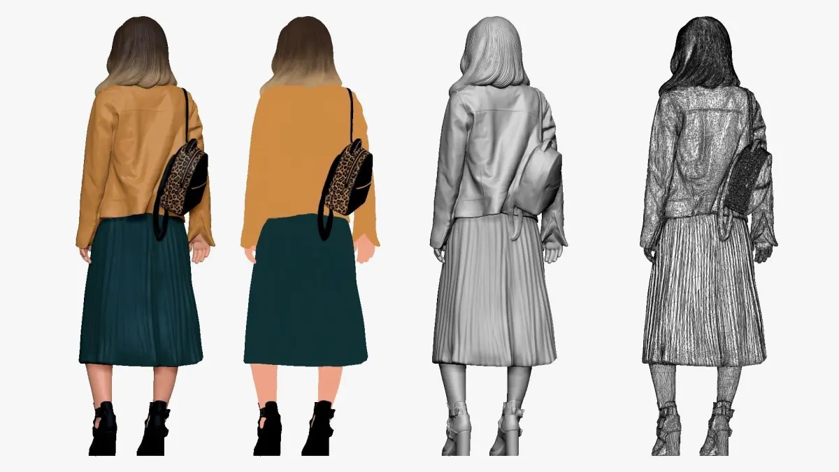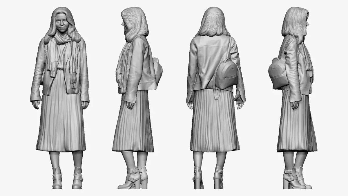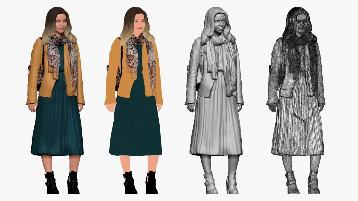 Home Catalog 001233 woman in long green dress and yellow jacket 3D model