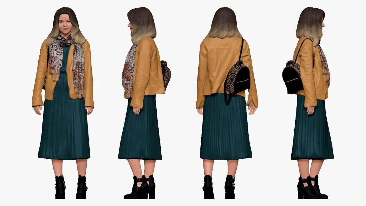 001233 woman in long green dress and yellow jacket 3D model