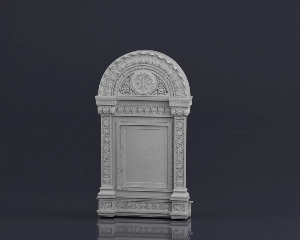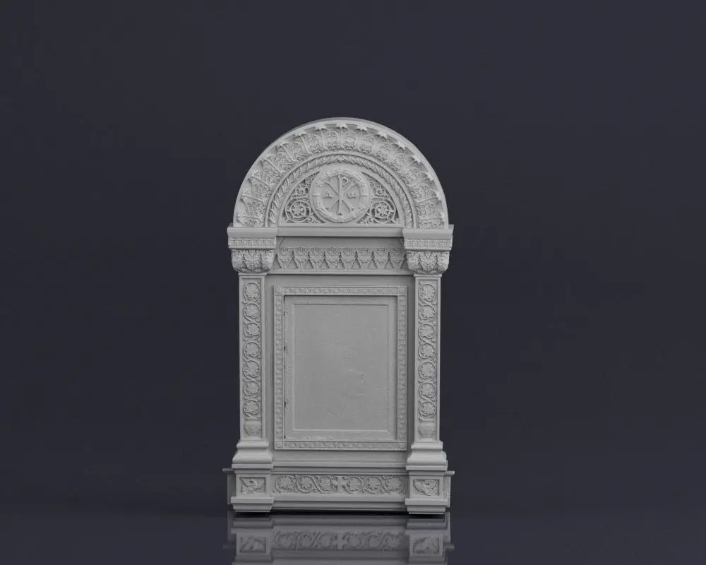 This is a raw scan of a hanging icon case (kiot), showcasing intricate carvings and detailed decorative elements typical of religious and historical artifacts. The model is presented in its original scanned form, requiring additional processing and refinement. Perfect for restoration projects, digital archiving, or as a reference for creating accurate replicas of traditional designs. This 3D model is suitable for visualization, restoration planning, or as a starting point for crafting custom designs in religious art.