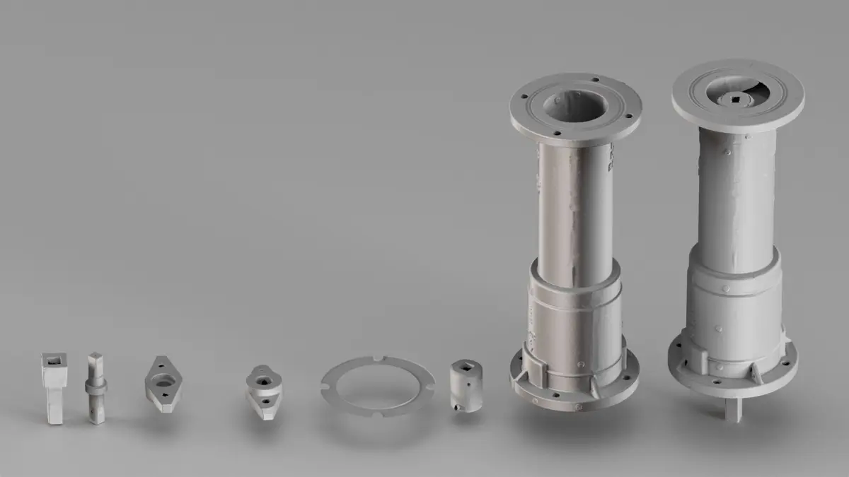 The asset includes disassembled inner mechanisms and two assembled hydrant columns. All meshes reflect their scanned origin and are left unretouched for maximum realism and reference accuracy. Perfect for use in engineering environments, pipeline simulations, or mechanical studies.