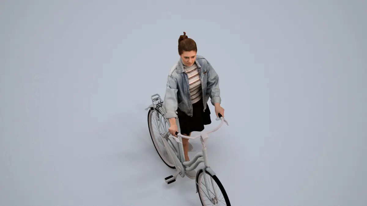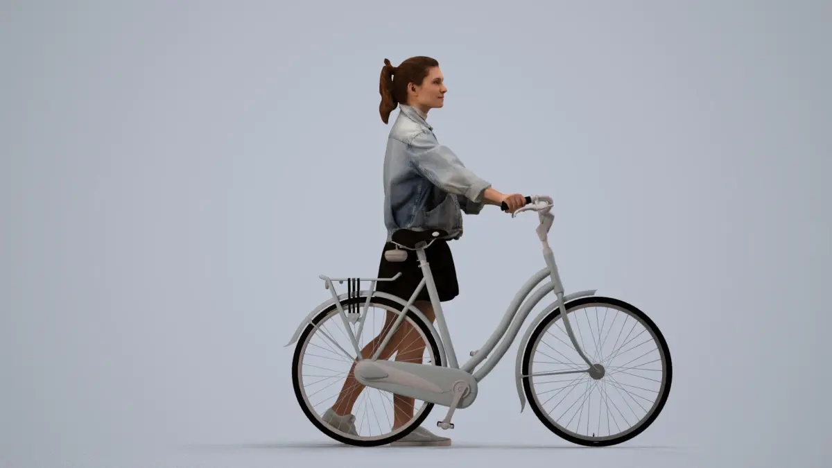 a woman is next to a bicycle