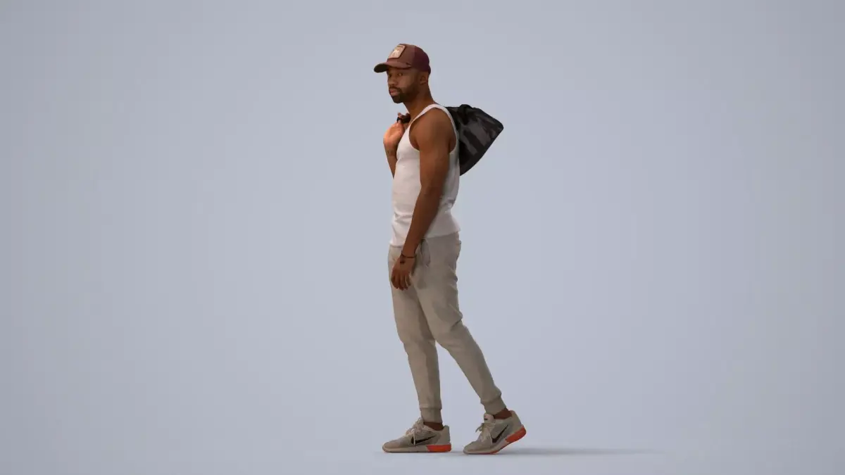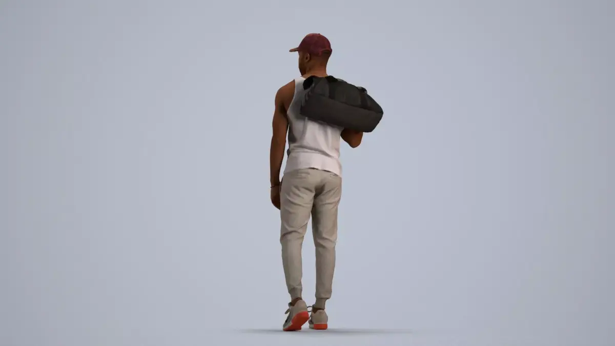 male, adult, black, walking, casual, summer, public, bag, 1_people, summerwear