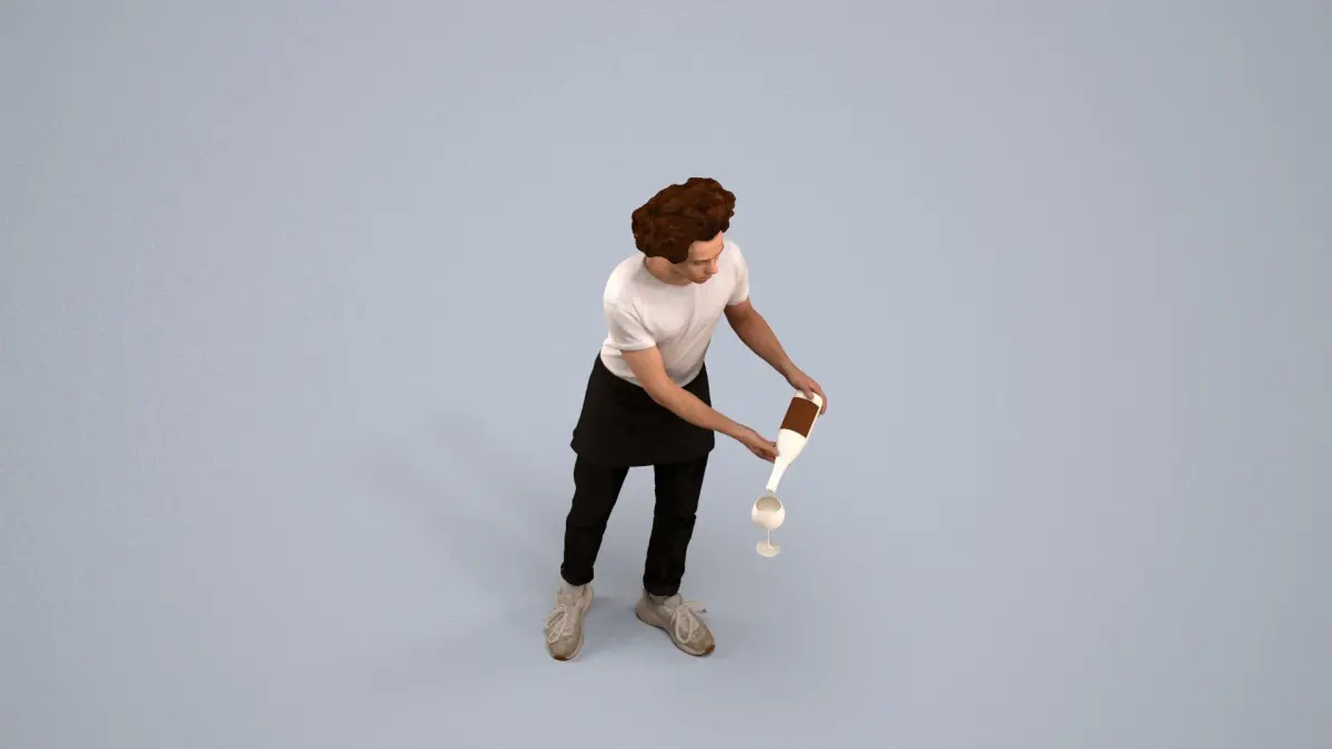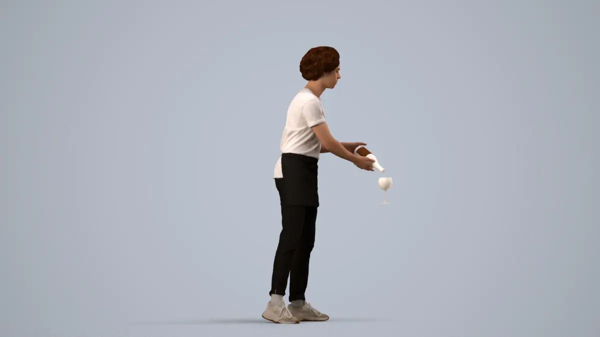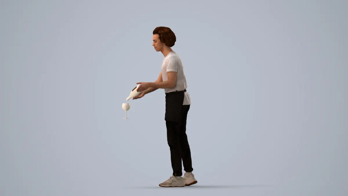 a waiter in a white shirtblack pants pouring a glass of wine