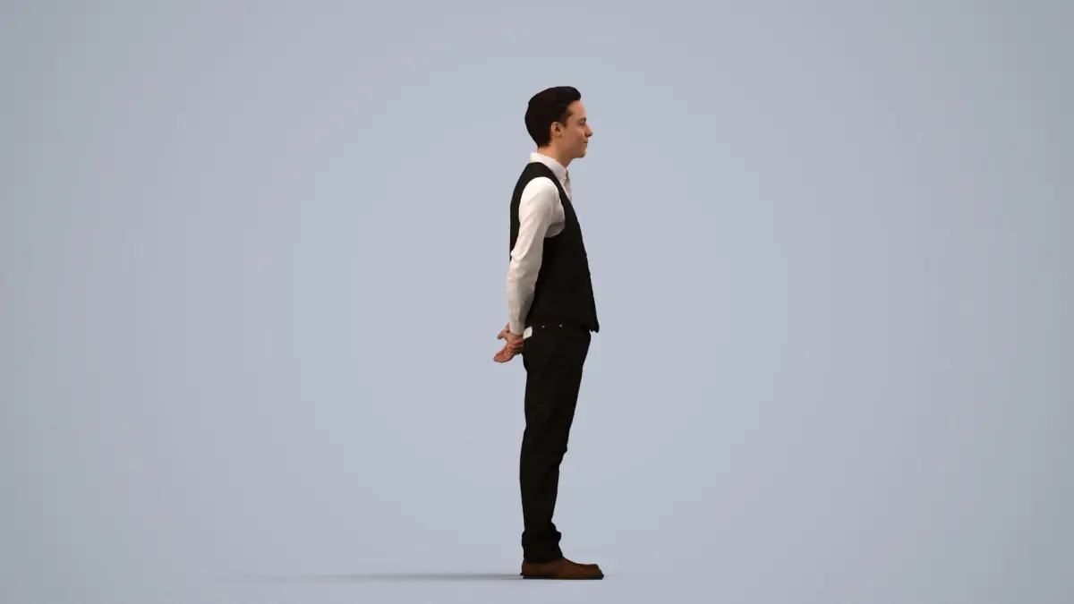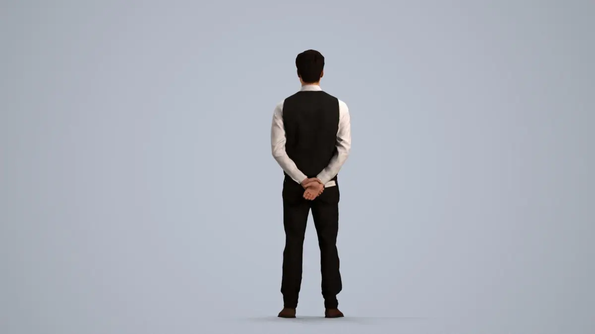 a man in a black vestwhite shirt working in hospitality