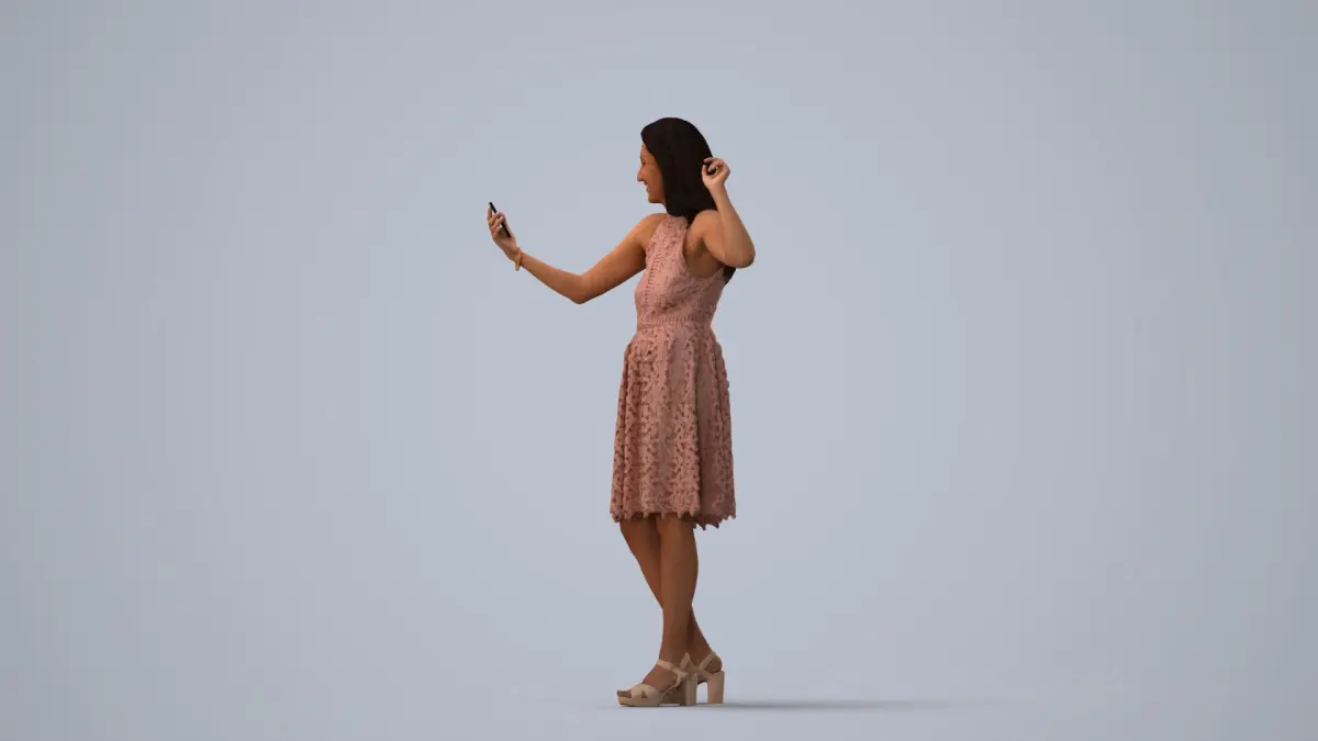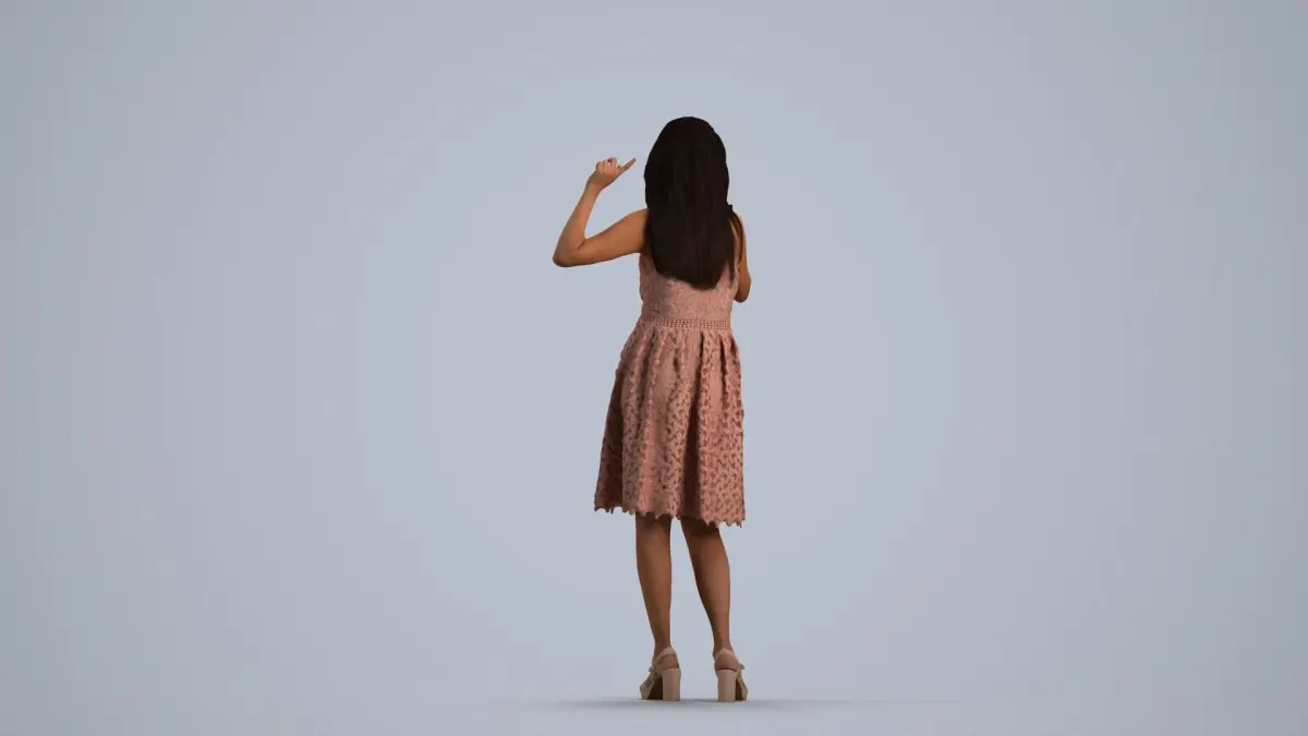 a woman in a pink dress posing for the camera