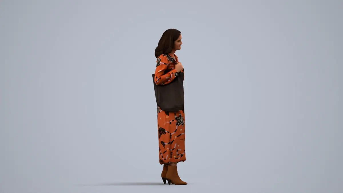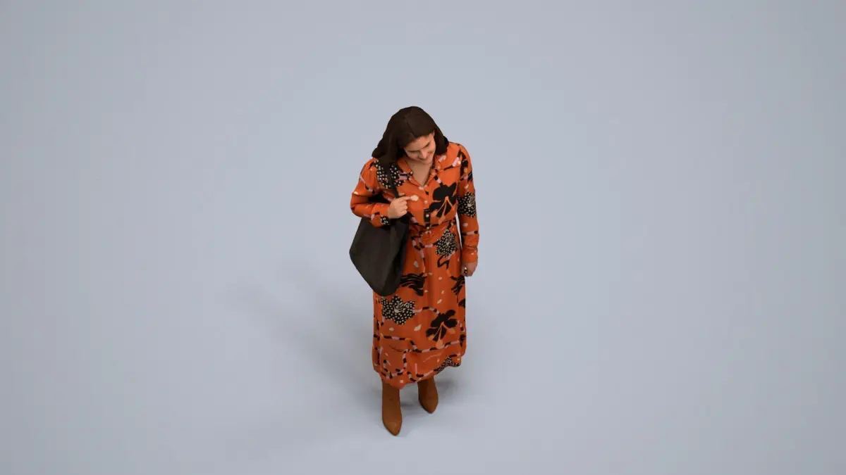 a woman in an orange dressbrown boots