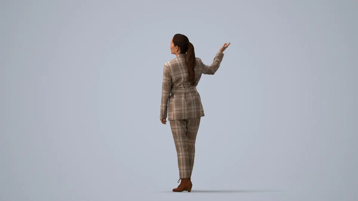 a woman in a suit giving a presentation