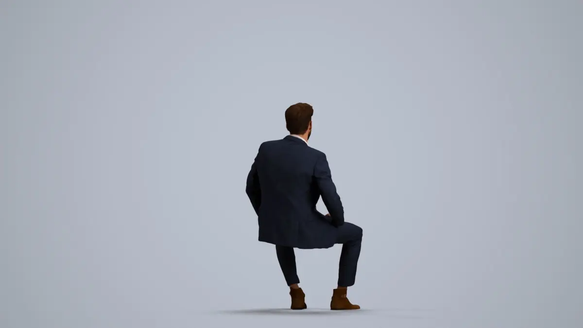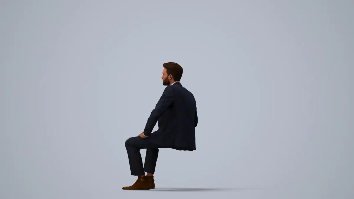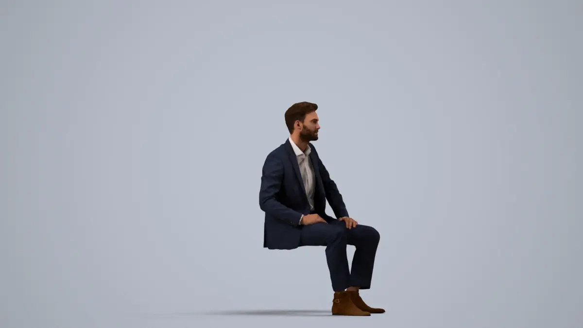 a man in a suit sitting on a cube