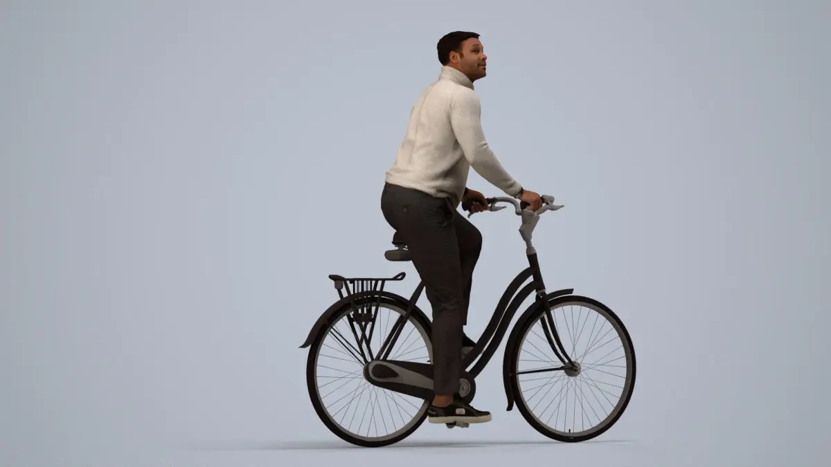 a man riding a bike with a hat on