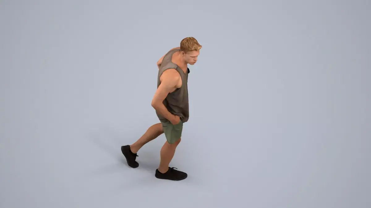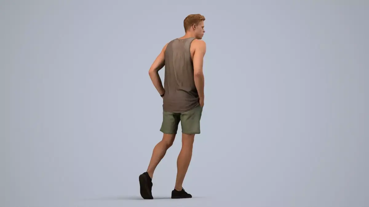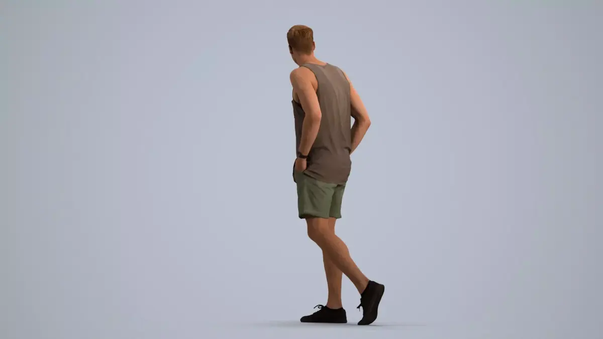 woman, strolling, pedestrian, street, urban, tank, top, shorts, sneakers, outdoor, daytime, leisure, relaxed, blonde, young, city, sidewalk, motion, waking, casual-wear