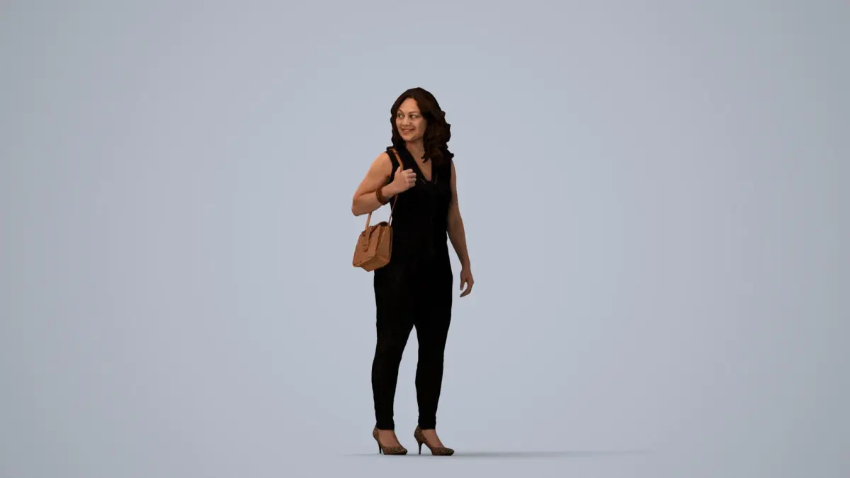 a woman with a brown purse on her shoulder
