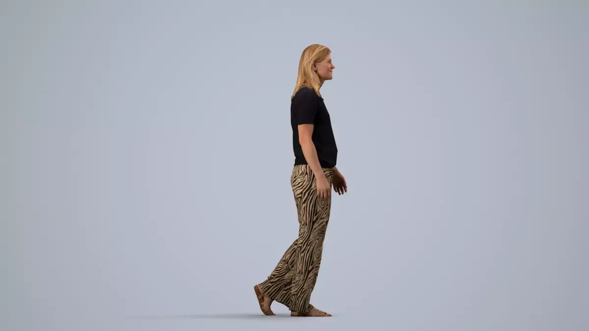woman, girl, lady, strolling, stride, pedestrian, moving, motion, blonde, fair, light, jeans, pants, trousers, shirt, tshirt, top, relaxed, leisure, everyday, walkin