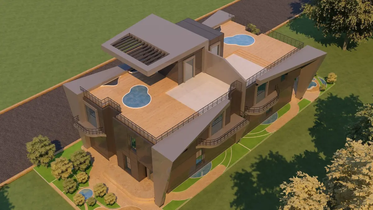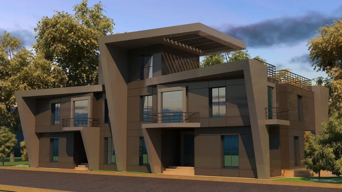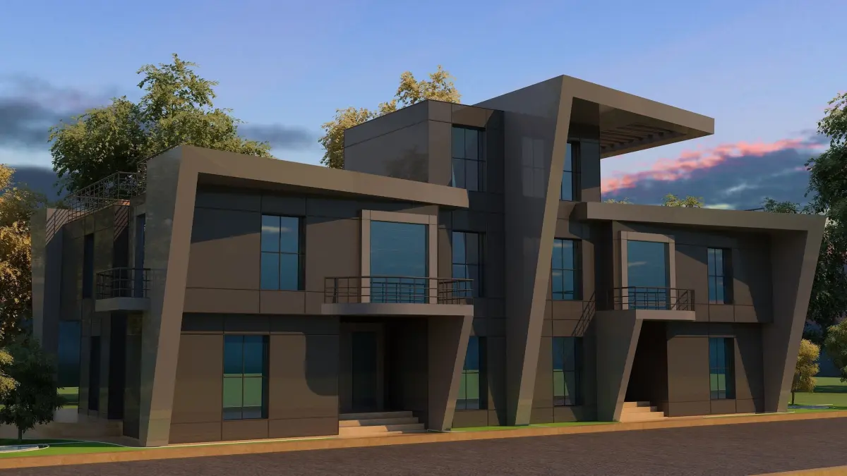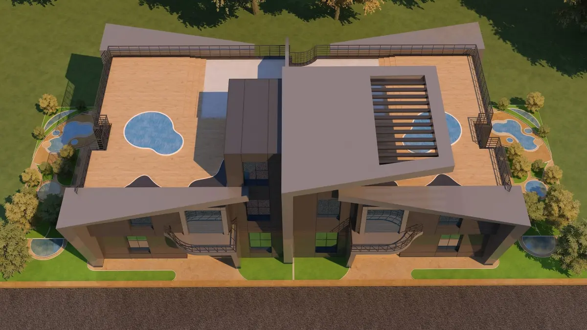 0057 - Modern Twin House - 3Ds Files - 2Ds Plans.