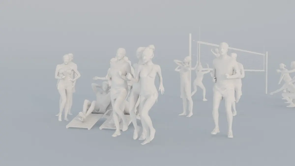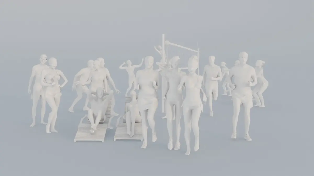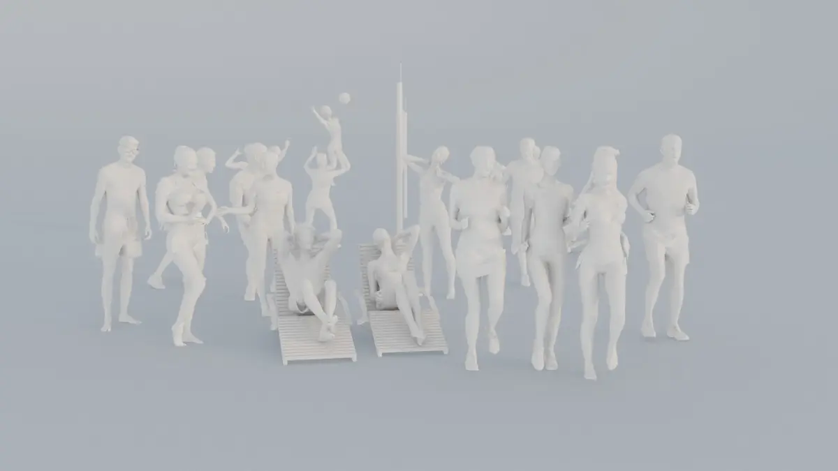 They are simplified versions of our well known high end scanned foreground 3d-characters of professional swimsuit models and casual naturally looking everyday people.
