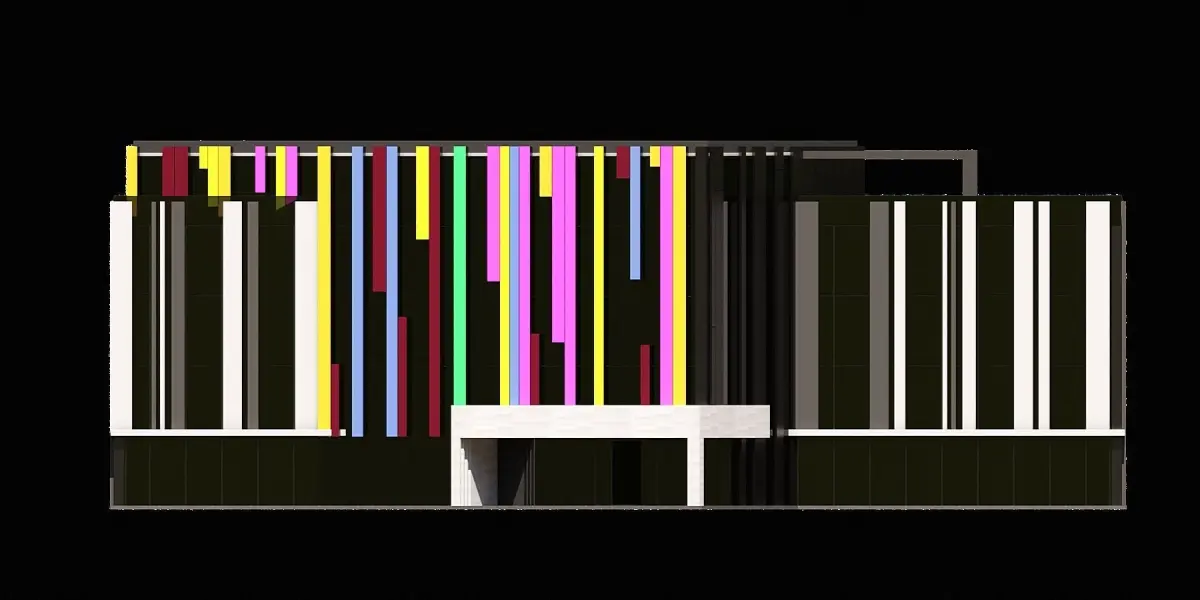 The combination of the colorful facade and the numerous windows gives the building a modern and artistic look, making it an interesting architectural landmark.