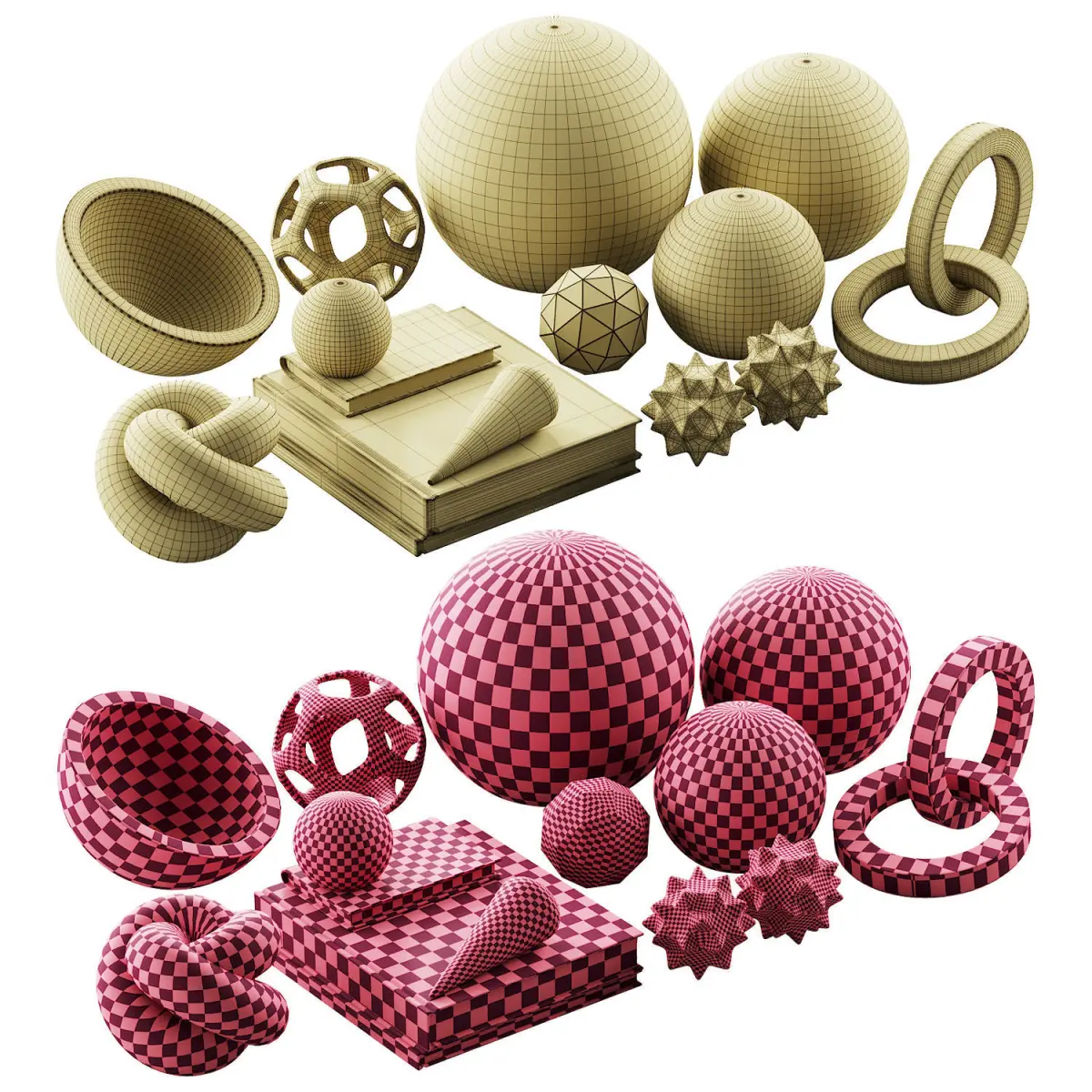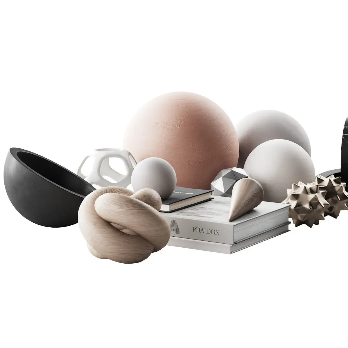 3d model of a decorative set for a coffee table, shelves, table, bedside tables or any other premises, consisting of: