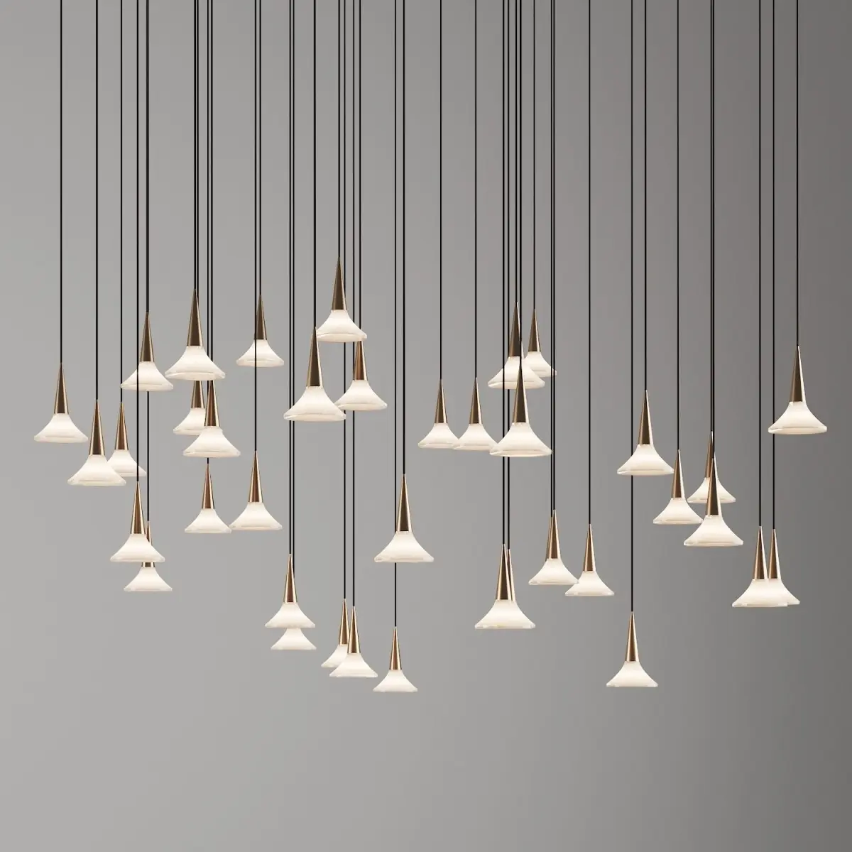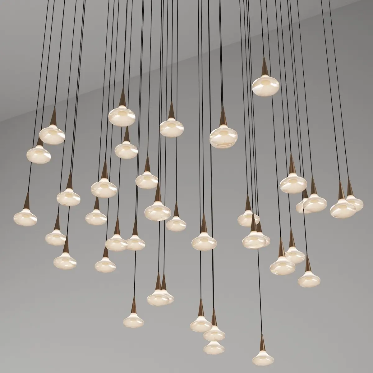 3d model of pendant lamp / chandelier ALO light by VISO lighting.Materials: Light gold polished metal / brass, glass.Link to the manufacturer's website: