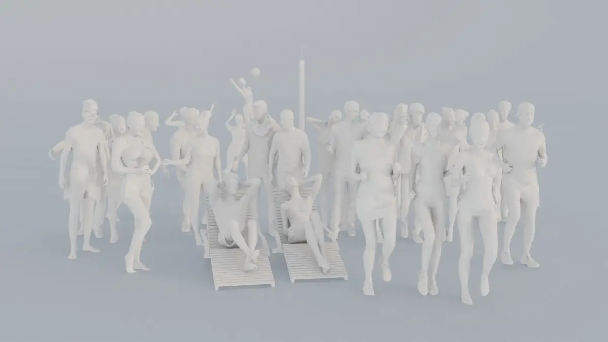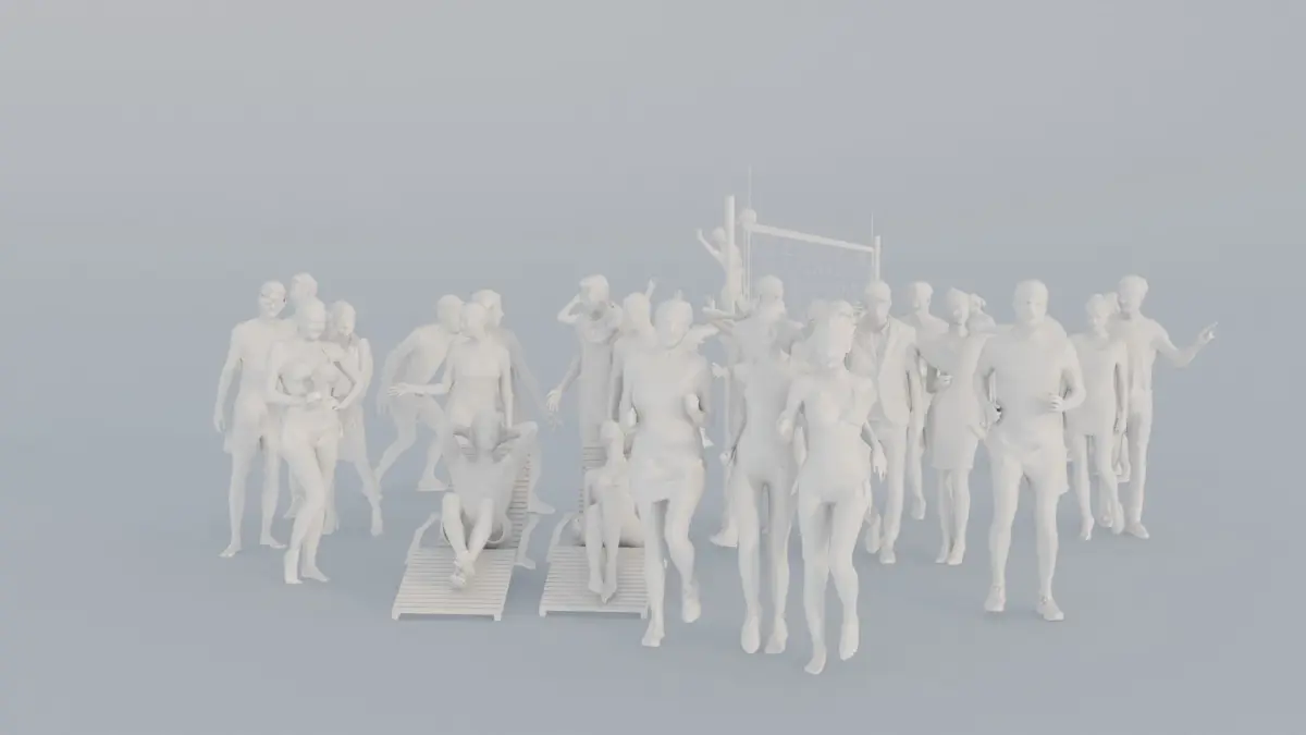 They are simplified versions of our well known high end scanned foreground 3d-characters of professional swimsuit models and casual naturally looking everyday people.