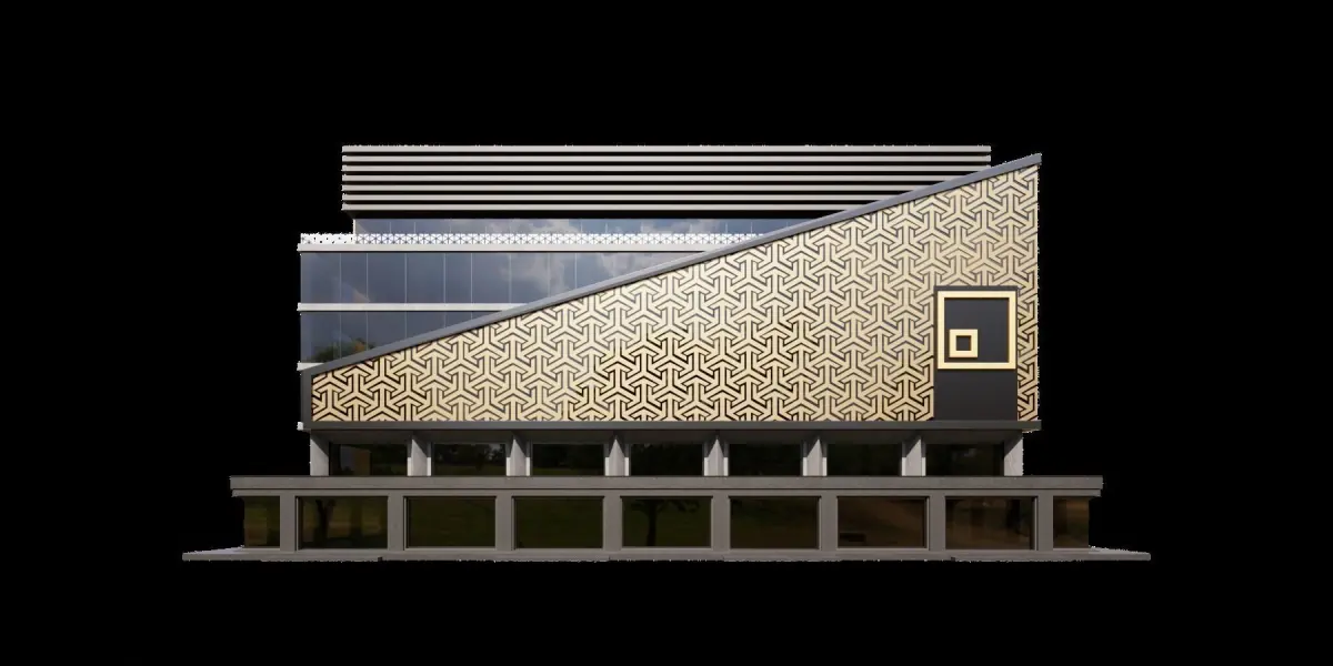 Modern Building With Geometric Form 3D ModelModern Building With Geometric Form