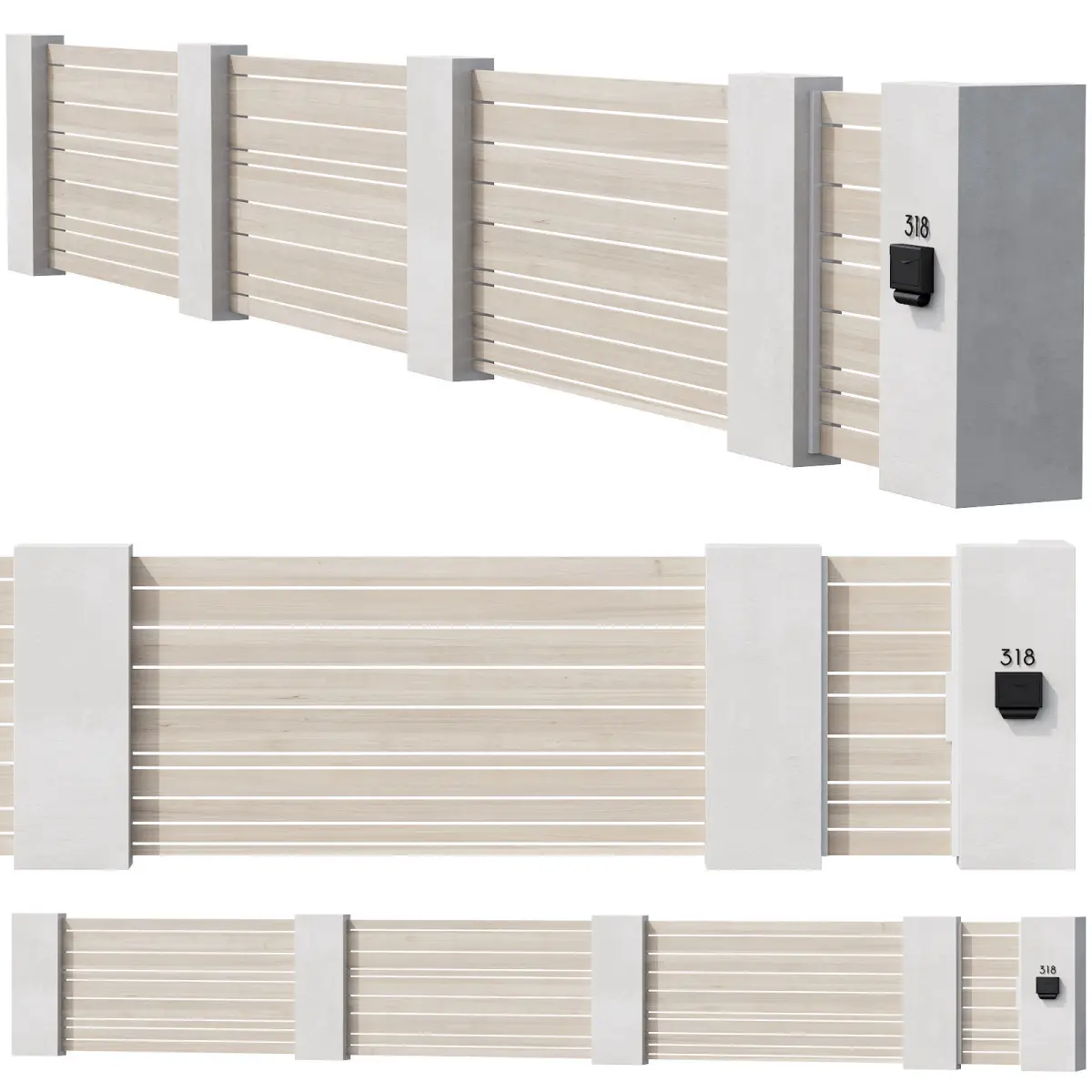 3d model of a modern fence in a minimalistic style, suitable for use in the exterior, interior (for a view outside the window), urban environment.