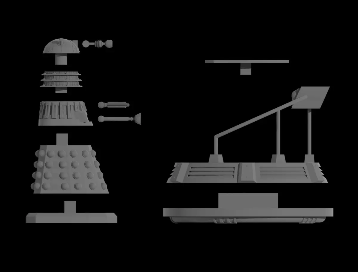 A Standard 05 Dalek is included however any dalek design in the 05 D.A.L.E.K range can be used as a pilot in its stead.