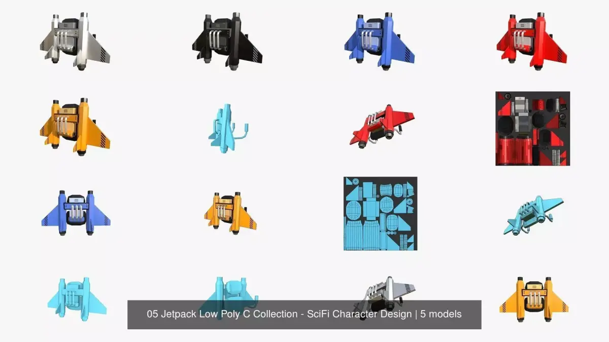 Jetpack Low Poly - SciFi Character Design01 model, 05 texture/colorscan be used as character costume/outfit/skin/clothing, or even as a decorative item.