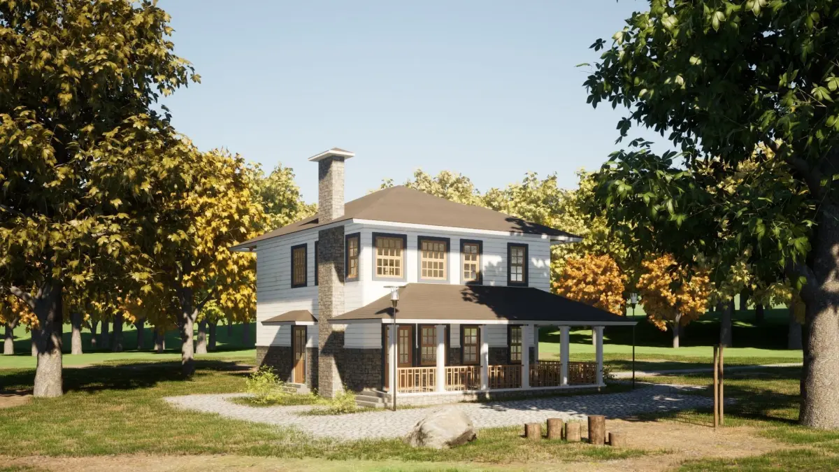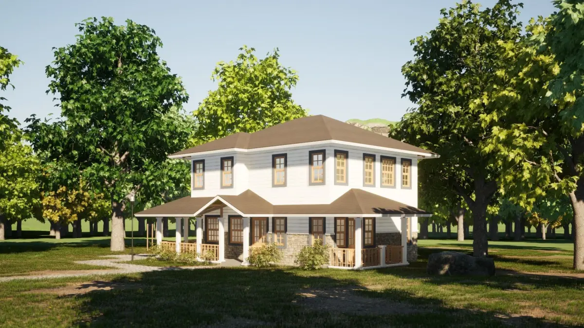 Porch, Hall, Sitting+Dinning+Kit, Laundry, Stair, 3Bedrooms, Livvingroom, 2Bathrooms! File Sketchup, Fbx, Obj!