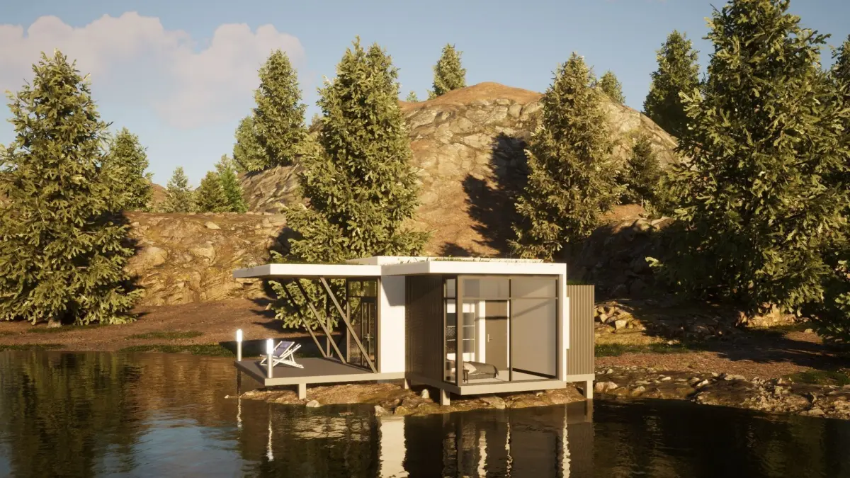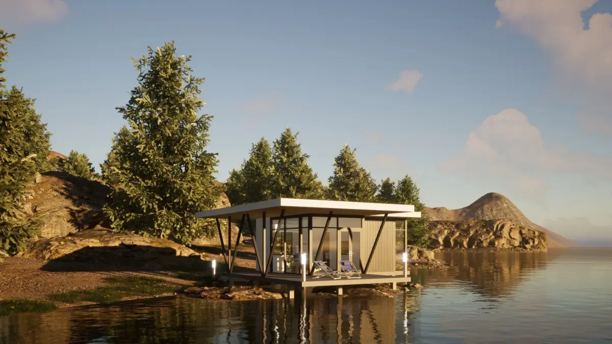 Porch, Living+Dinning+Kit, Bedroom, Bathroom, Lakeside! File Sketchup, Fbx, Obj!