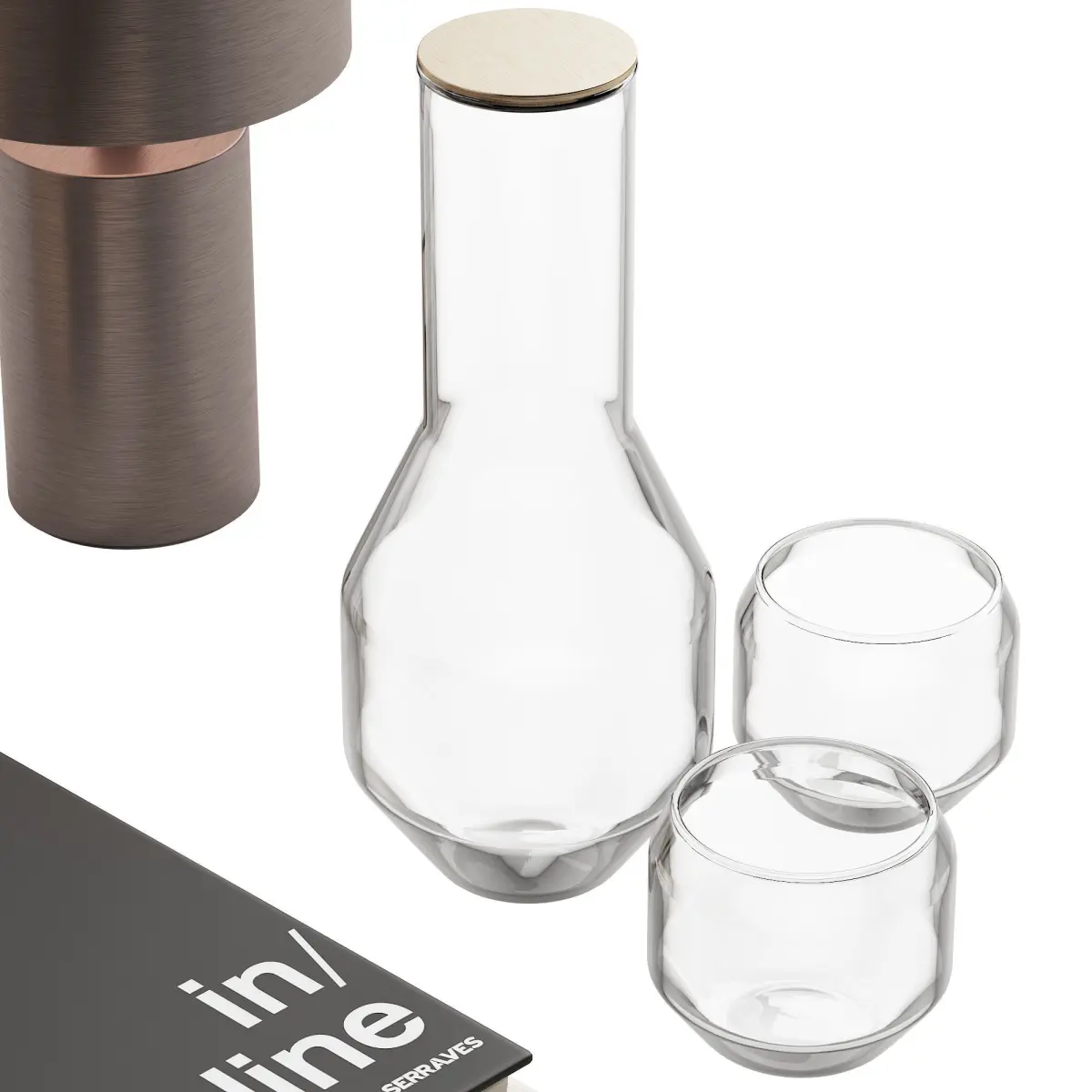 • Decorative set carafe + glasses ATIPICO ANGOLO made of clean glass with a metal stopper made of polished brass.
