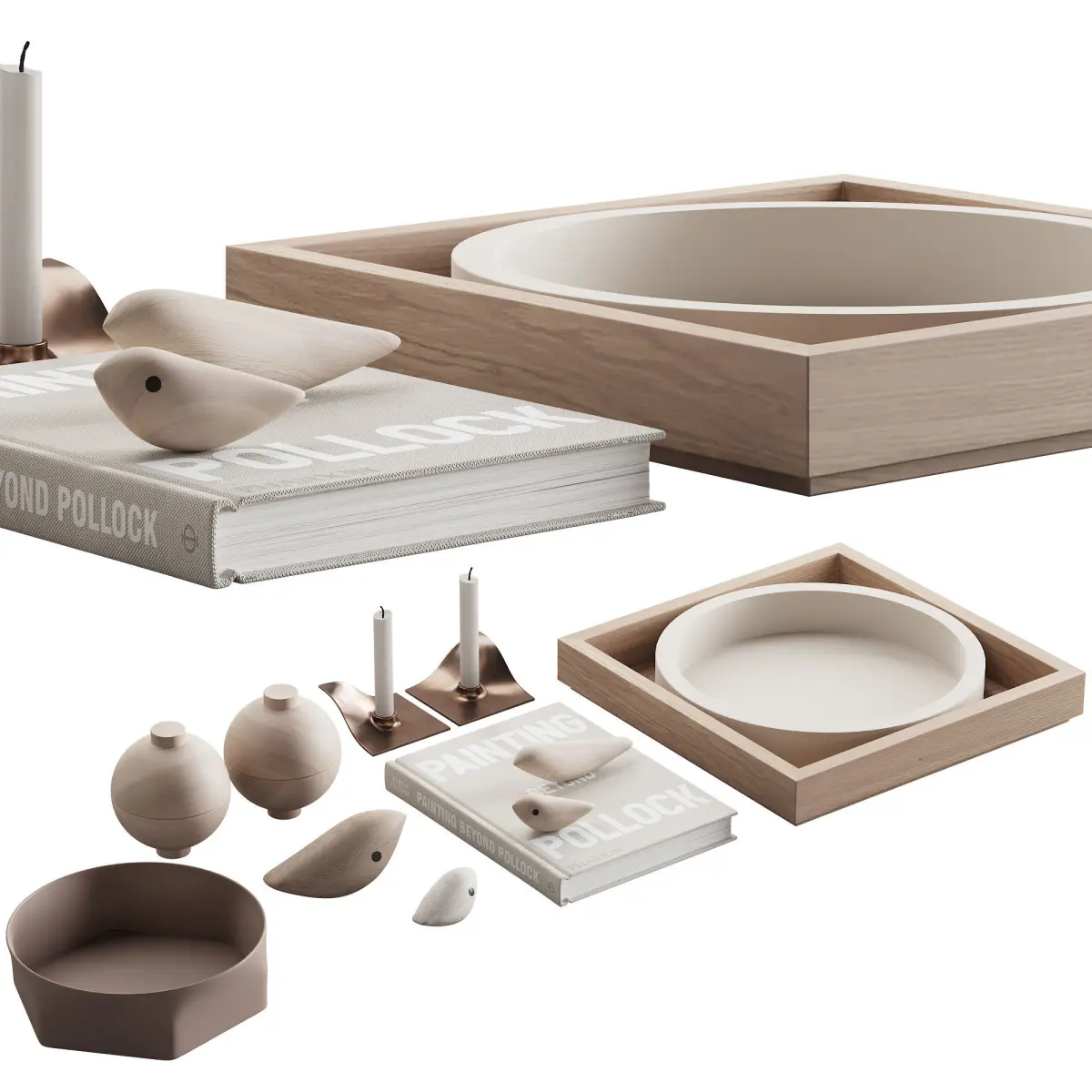 3d model of a decorative set for a coffee table, shelves, table, bedside tables or any other premises, consisting of: