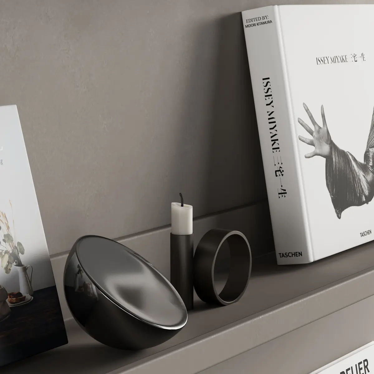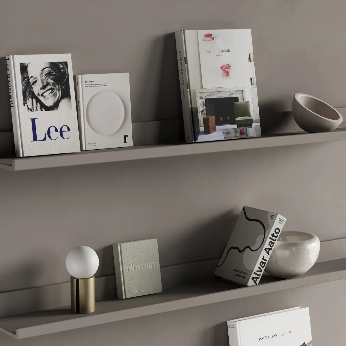 3d model of a wall rack in a minimalist style filled with decor. You can also find other similar models in my profile.