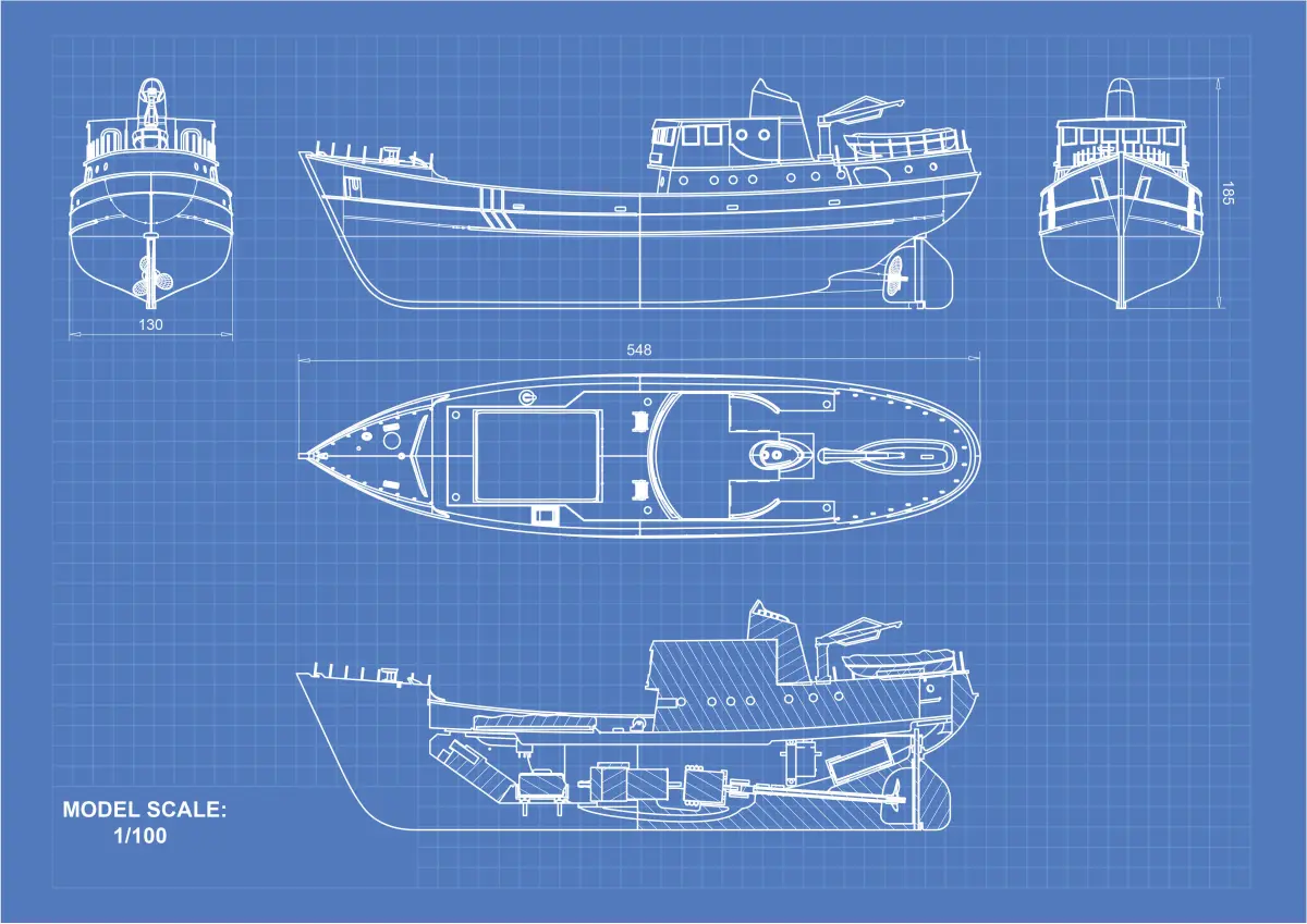 This is the instruction manual and interactive 3D PDF files for the 3D Printed 1:100 scale Fishing boat RC Model that can be downloaded for free. This information is included in the purchased package containing the STL files for 3D Prining the model.