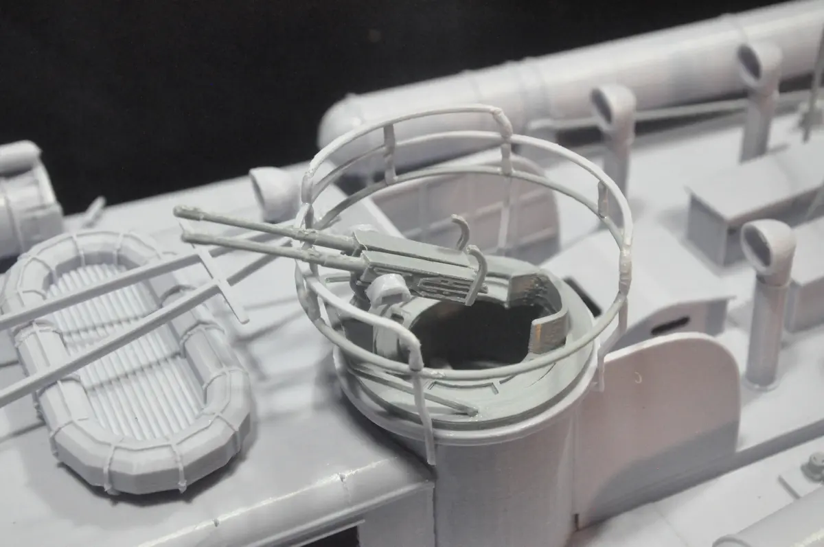 The hull and integrated deck are printed in four sections vertically. A 3D printer with a volume of 300x300x330mm is recommended. However, the hull was also divided into 16 sections for printers with a 250 x 250 mm bed.