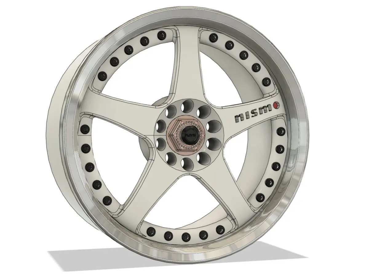 So I have created my own to use on a replica build.These 17" wheels (19.5mm dia) come with staggered lips and a separate hub.They have some amazing details on the centre caps and the word Nismo.This wheel set comes with 2 hubs, male and female so they will work on all Aoshima, Fujimi, Hasegawa and Tamiya fitments.Also comes with tyres in 2 widths.