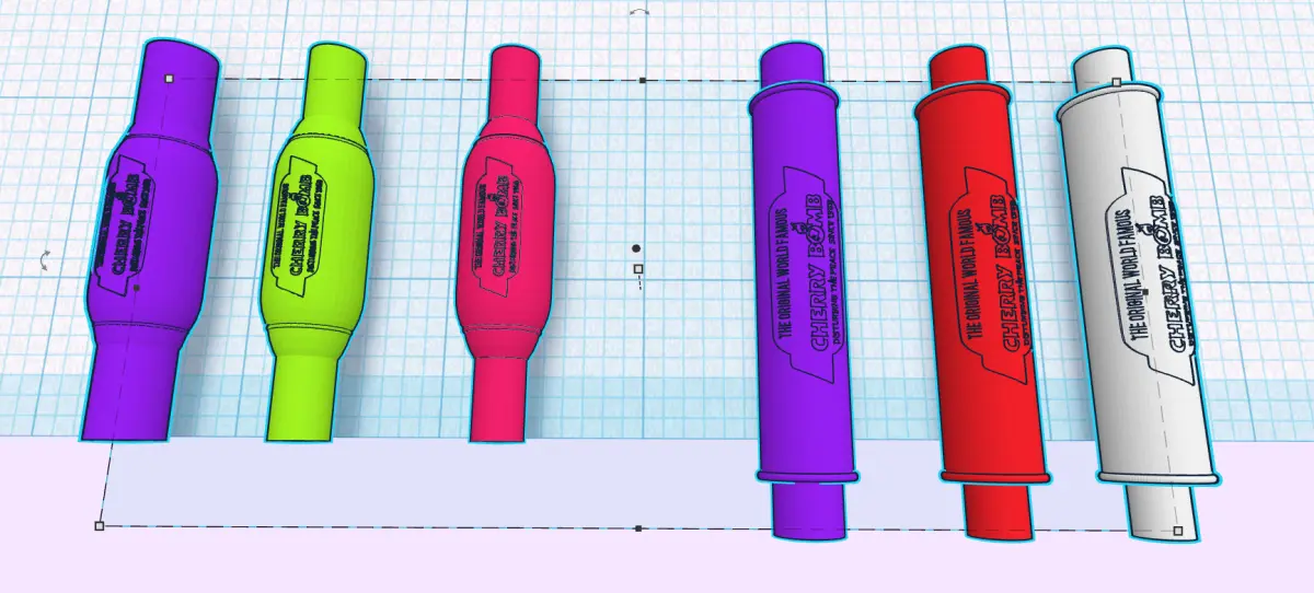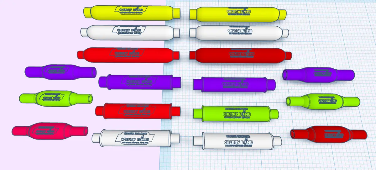 1/25th scale Cherry Bomb mufflers, 3 styles based on 1:1 scale, long bottle, 26(30 total), short bottle 13(19 total) and old skool canister 18(23 total)