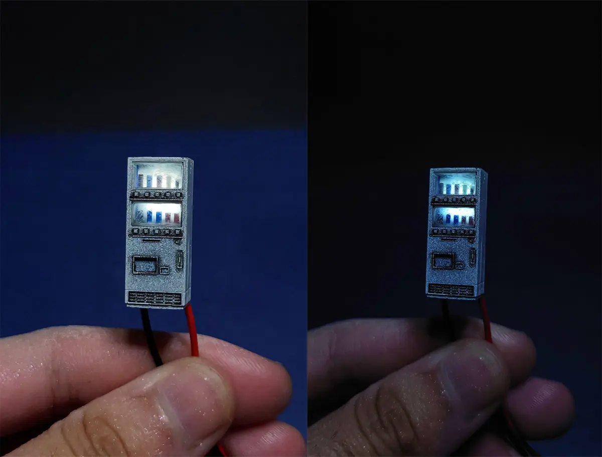 Files Type: STL in zip foldercomes in separate pieces as a model kit and a full model.You can add a 3mm LED Light from the back and 1k omh resistor for a lightup vending machine